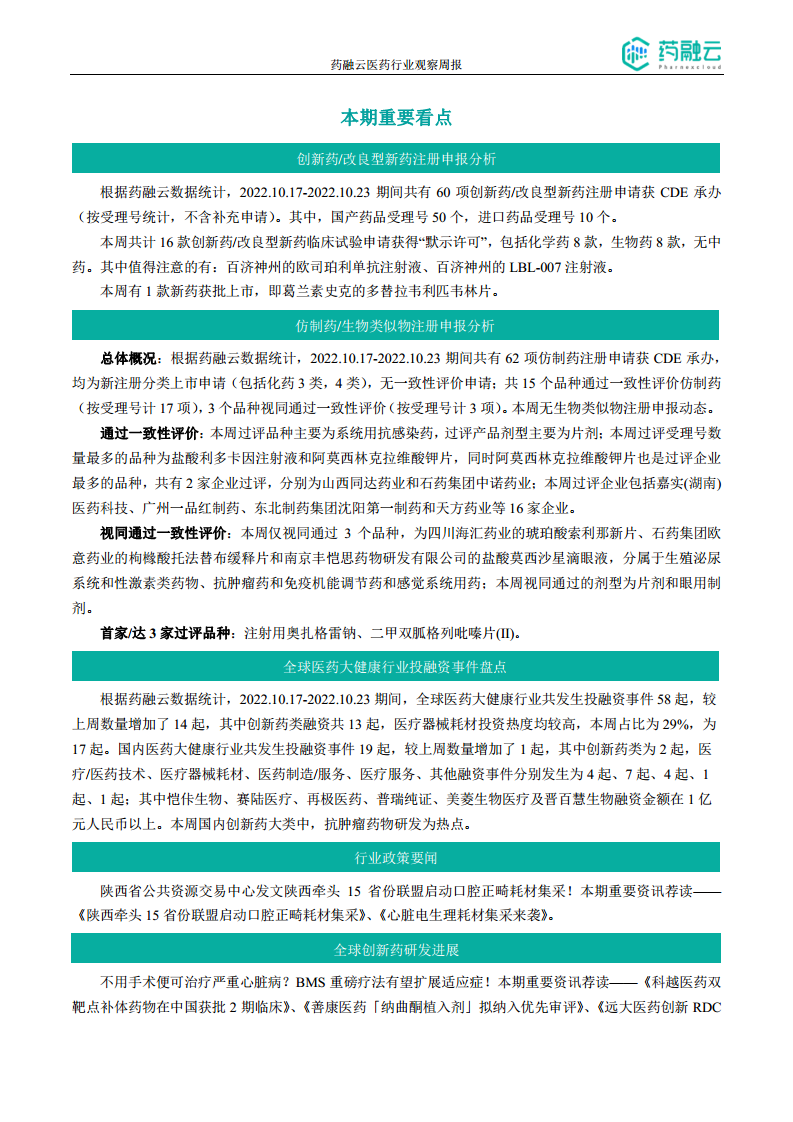 摩熵咨询医药行业观察周报(2022.10.17-2022.10.23)