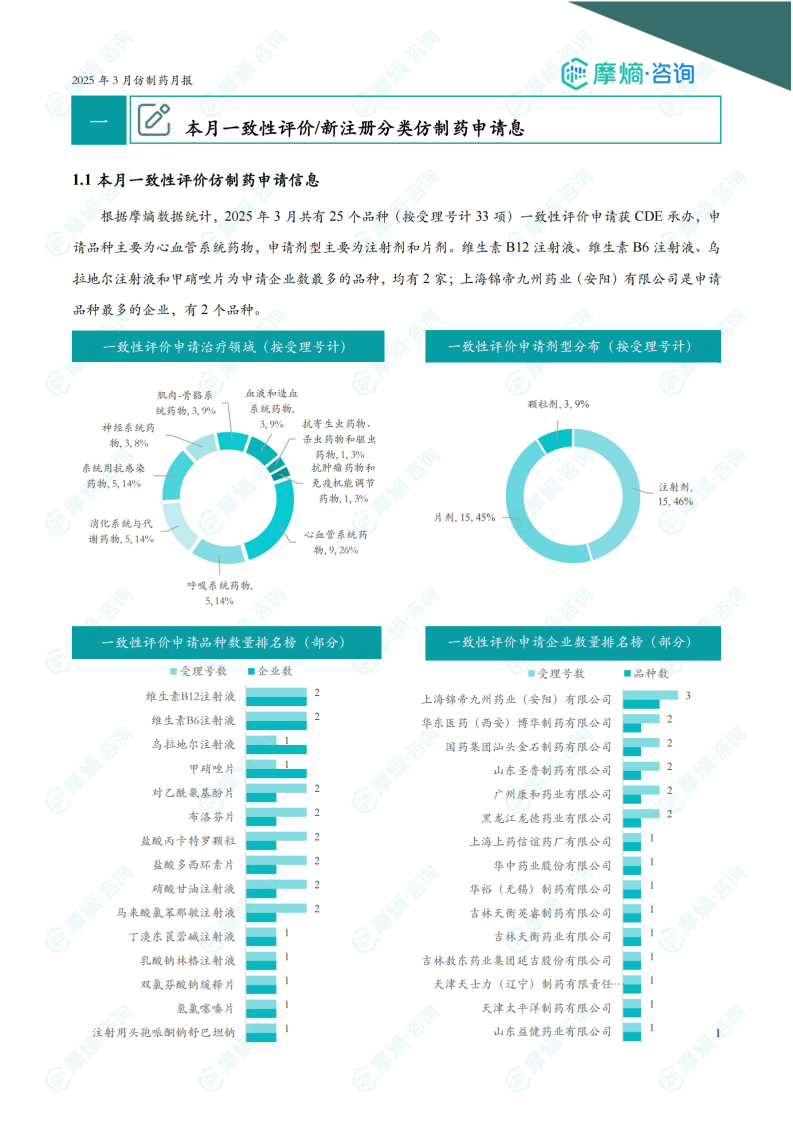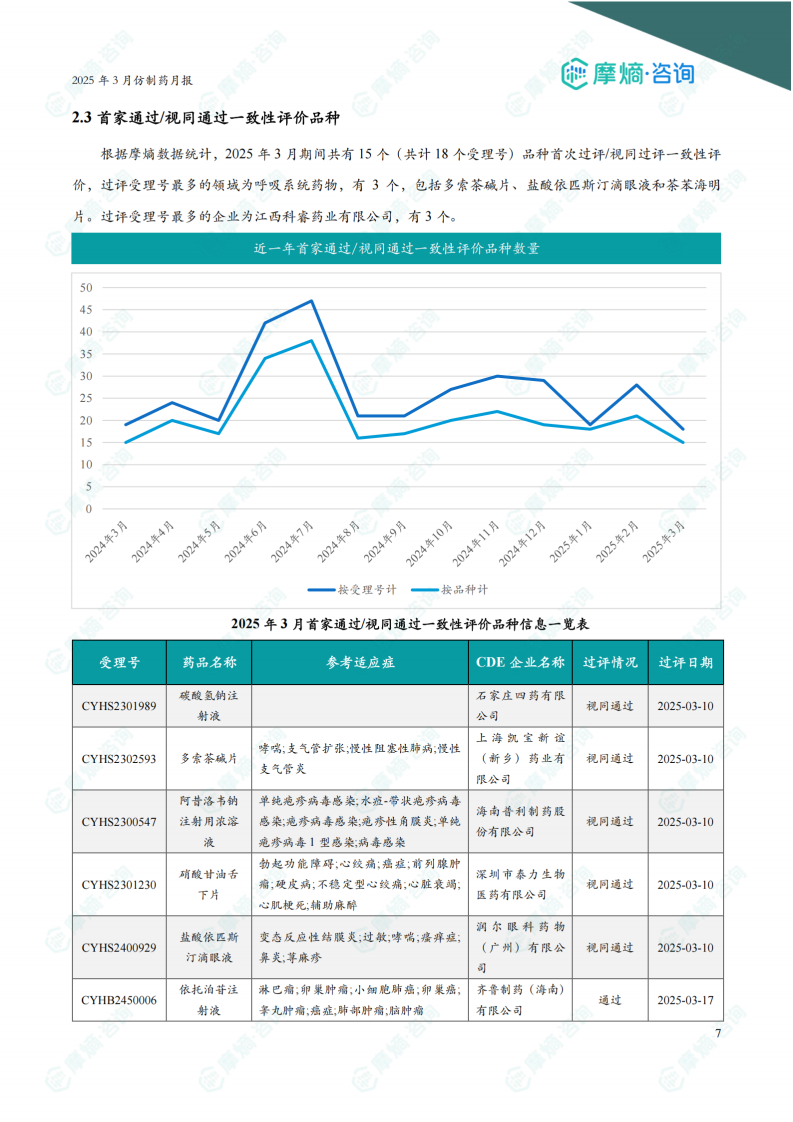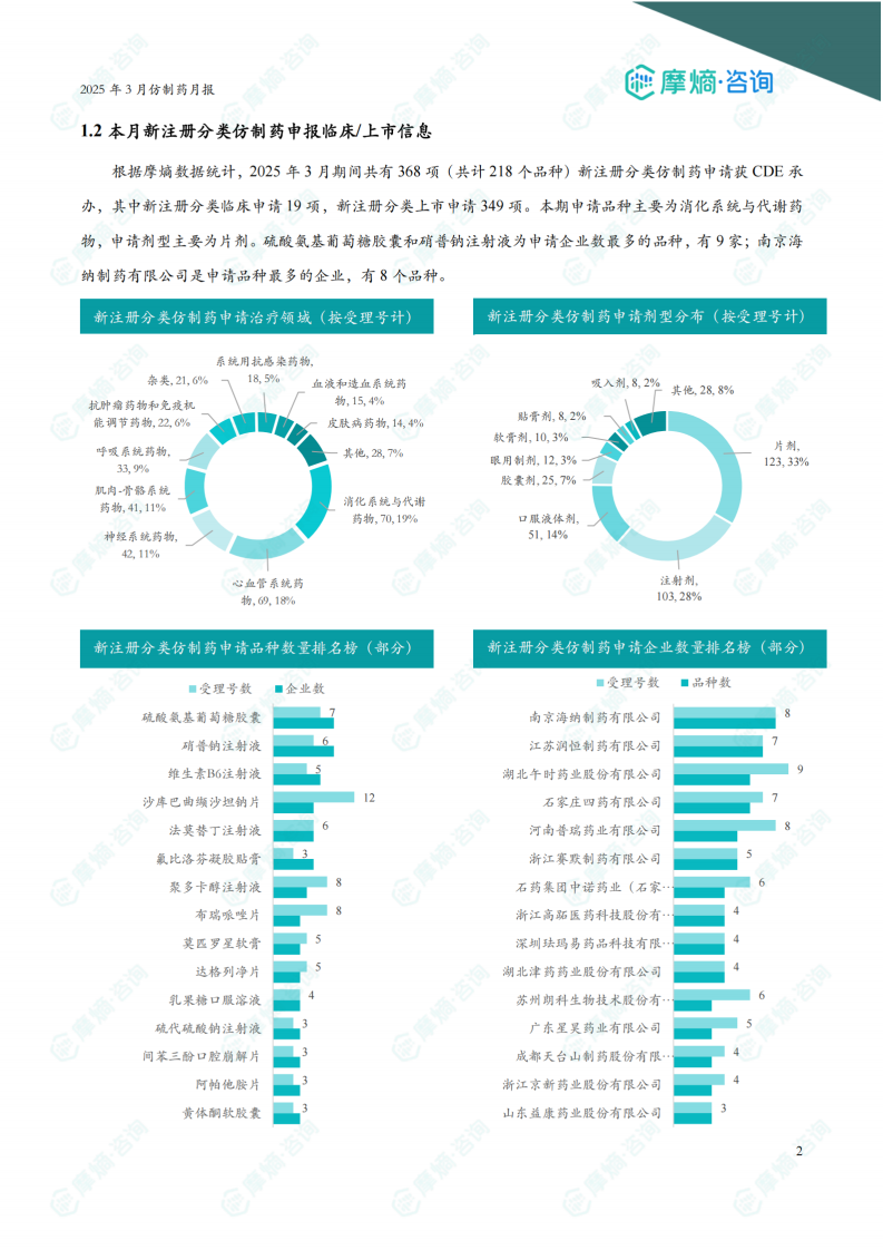 本报告基于摩熵数据,对2025年3月中国仿制药市场进行了统计分析,核心观点如下: