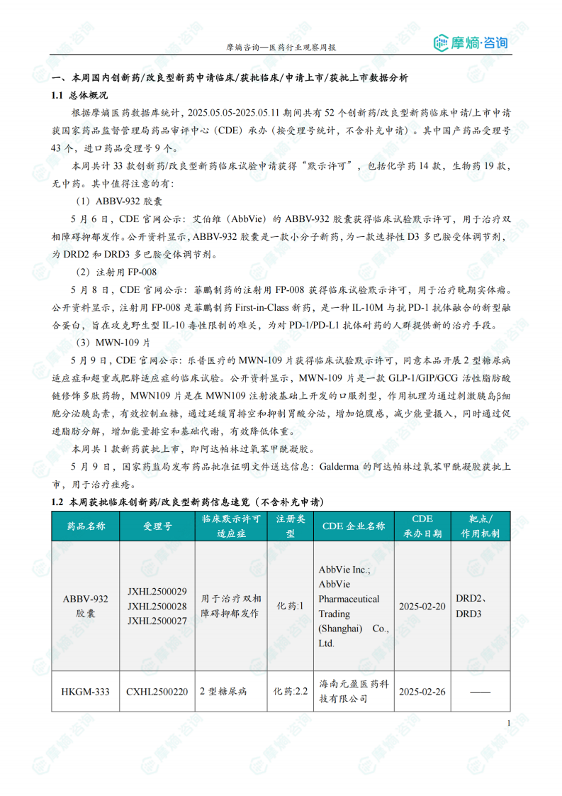 摩熵咨询医药行业观察周报(2025.05.05-2025.05.11)