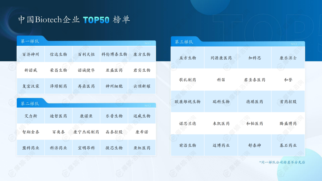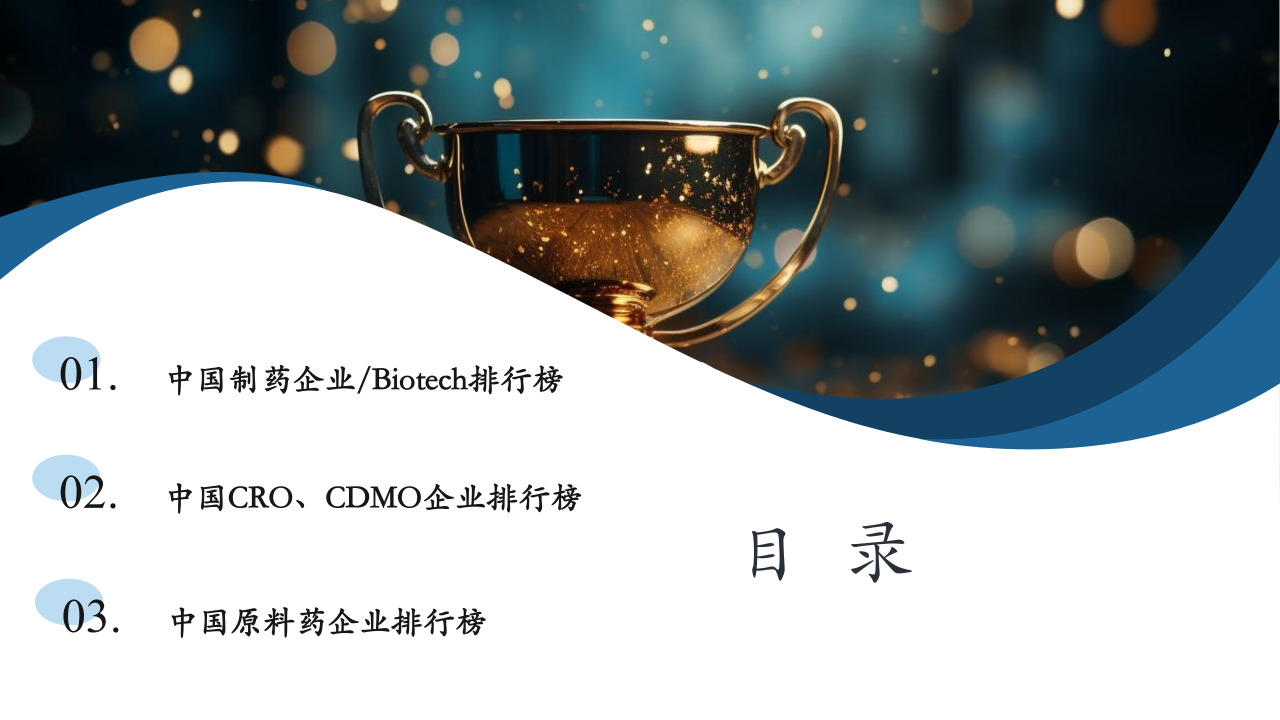 本报告对中国制药企业和Biotech企业进行了排名,分别列出了TOP100和TOP50榜单,但未提供具体的排名数据和企业信息。报告指出,排名依据为企业年度总收入、研发投入、净利润、员工人数等指标,并对这些指标进行了归一化处理和加权计算。