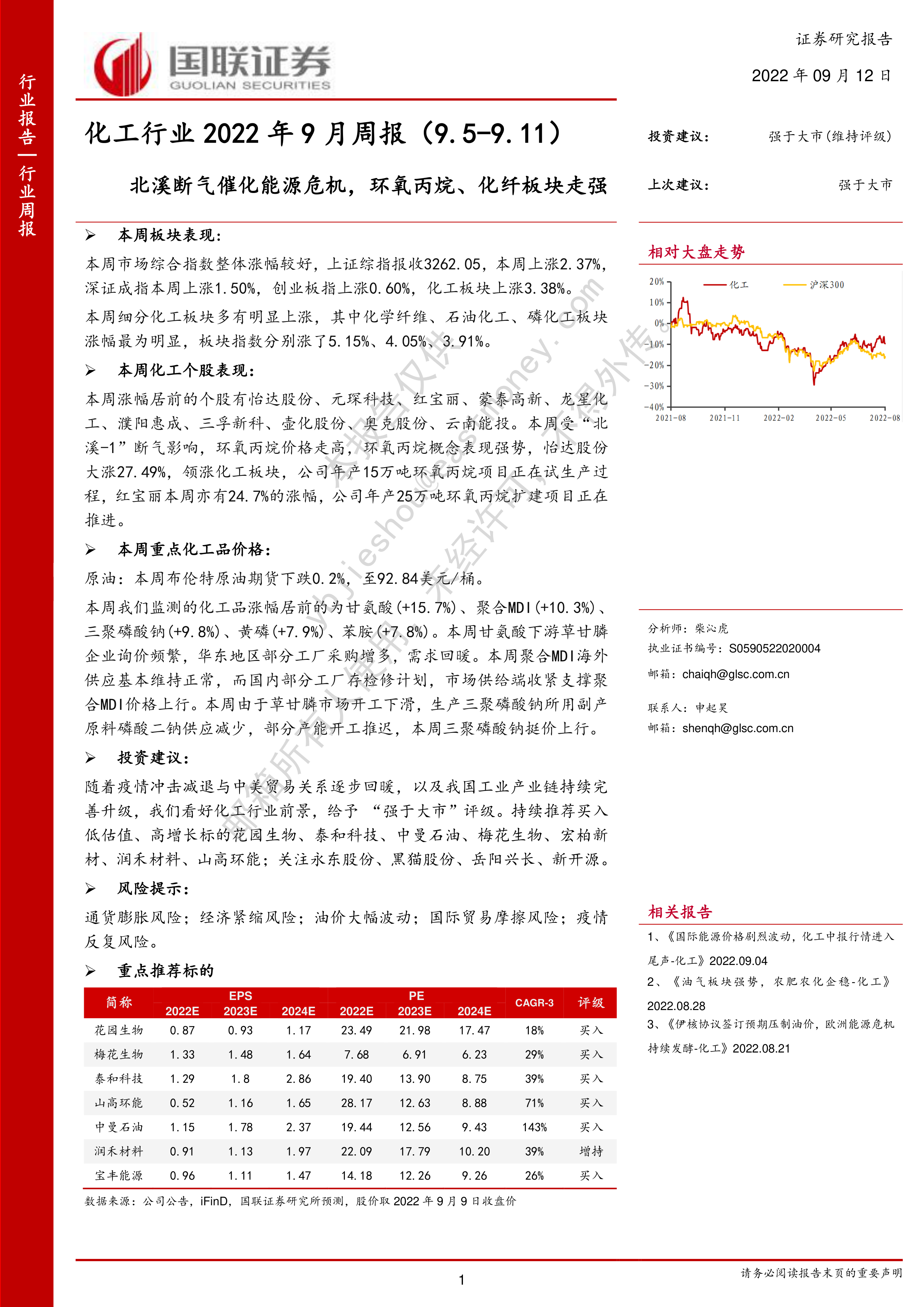 化工行业2022年9月周报:北溪断气催化能源危机,环氧丙烷、化纤板块走强