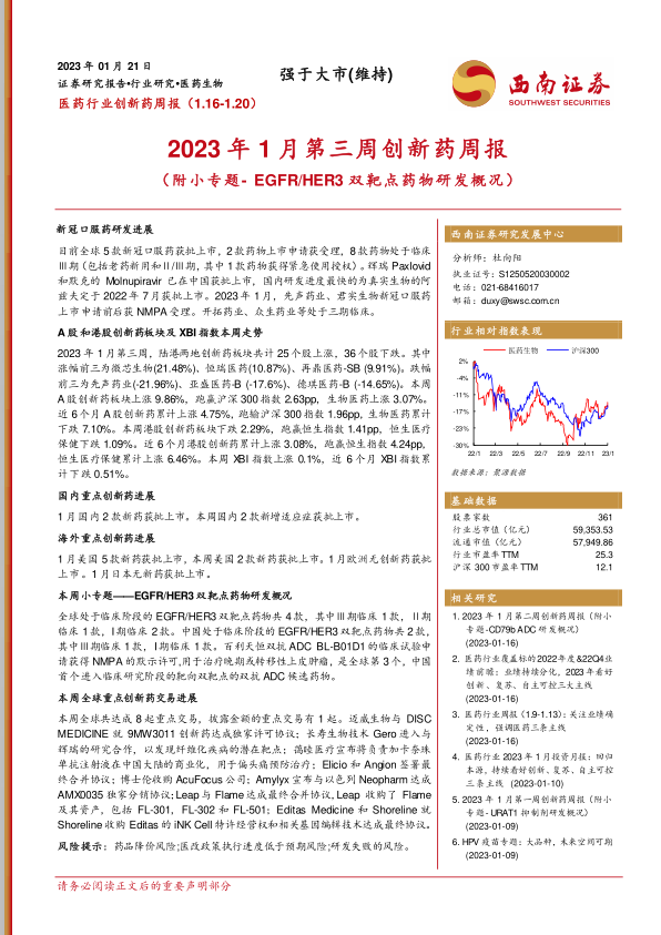 医药行业创新药周报:2023年1月第三周创新药周报(附小专题-EGFR/HER3双靶点药物研发概况)