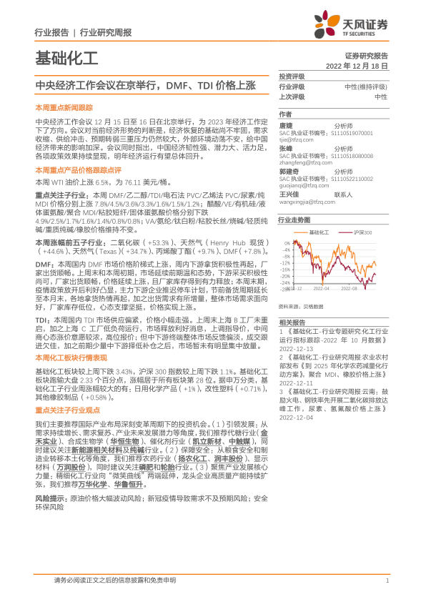 基础化工行业研究周报:中央经济工作会议在京举行,DMF、TDI价格上涨