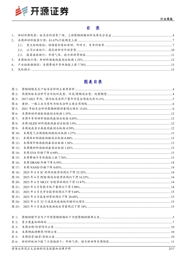 新材料周观察: 粉末涂料前景广阔,上游聚酯树脂材料或将充分受益