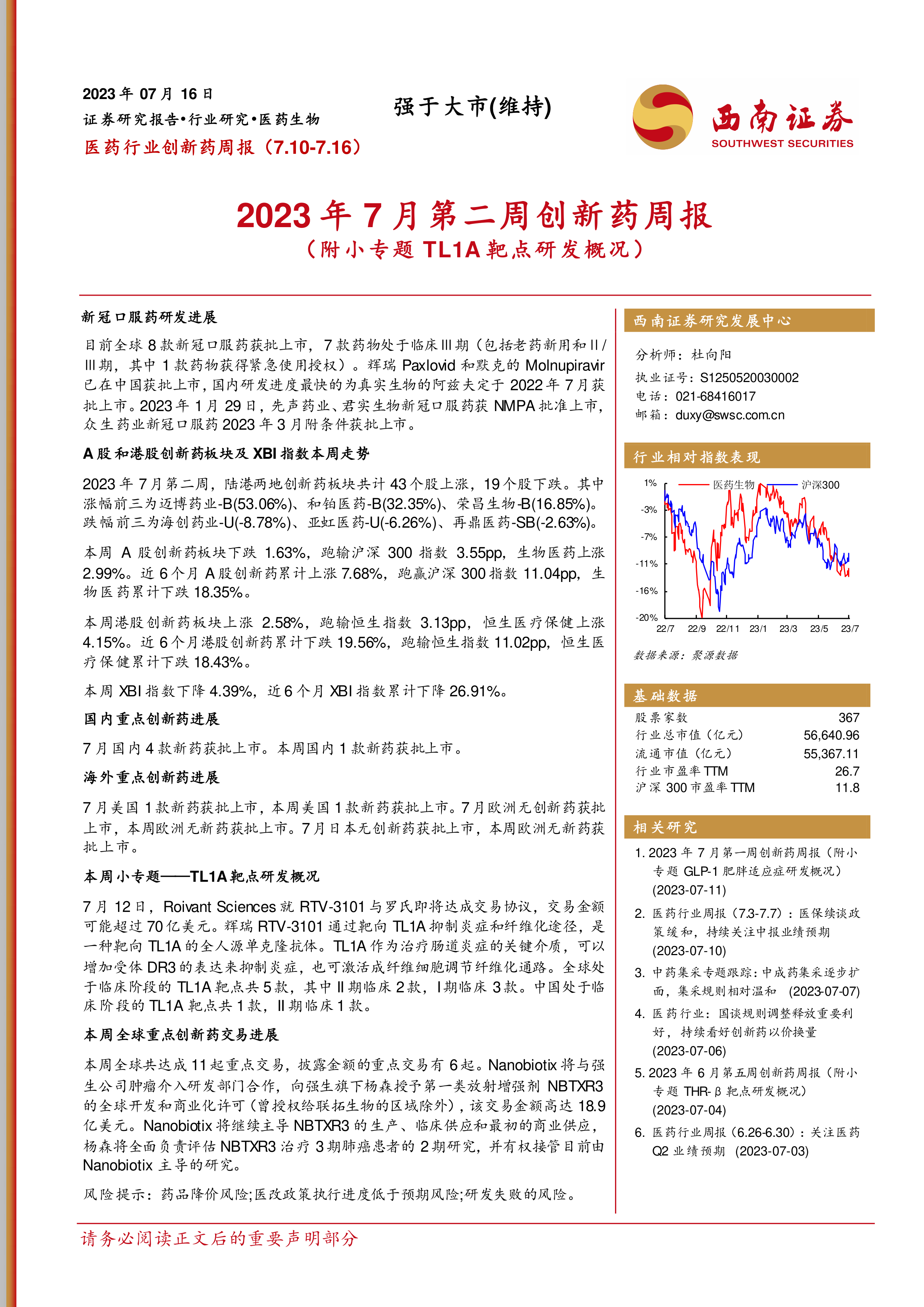 2023年7月第二周创新药周报(附小专题TL1A靶点研发概况)