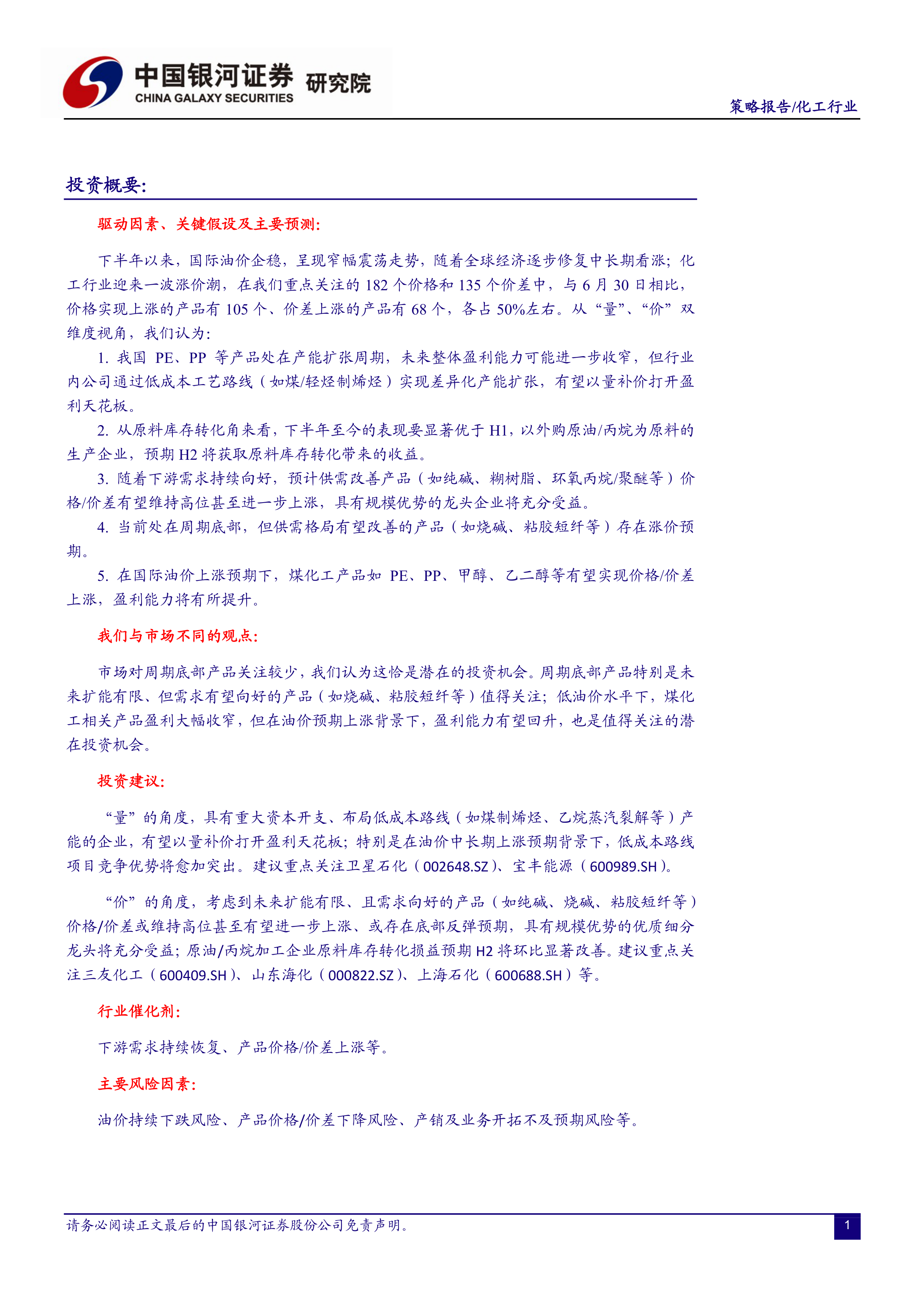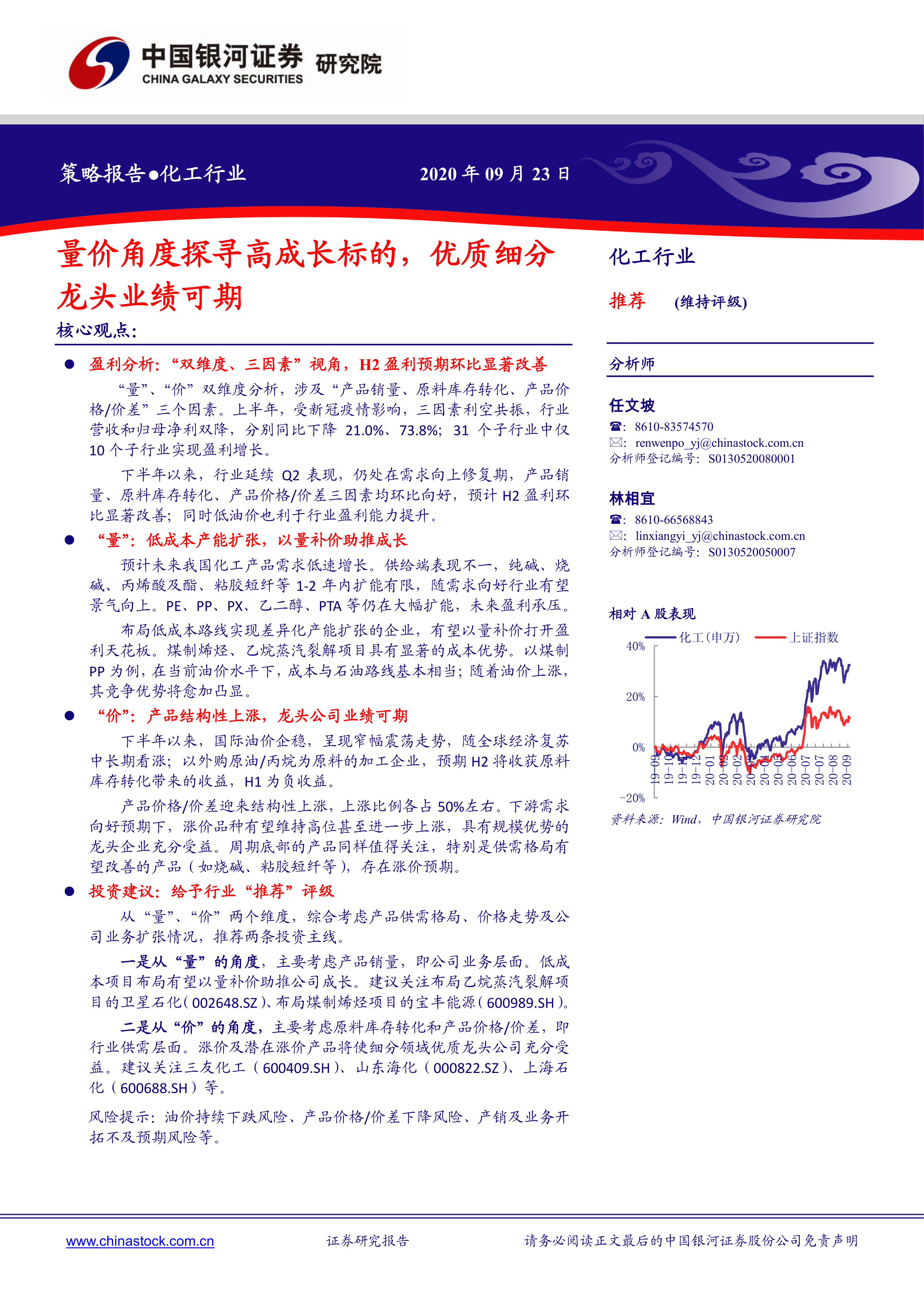 化工行业策略报告:量价角度探寻高成长标的,优质细分龙头业绩可期