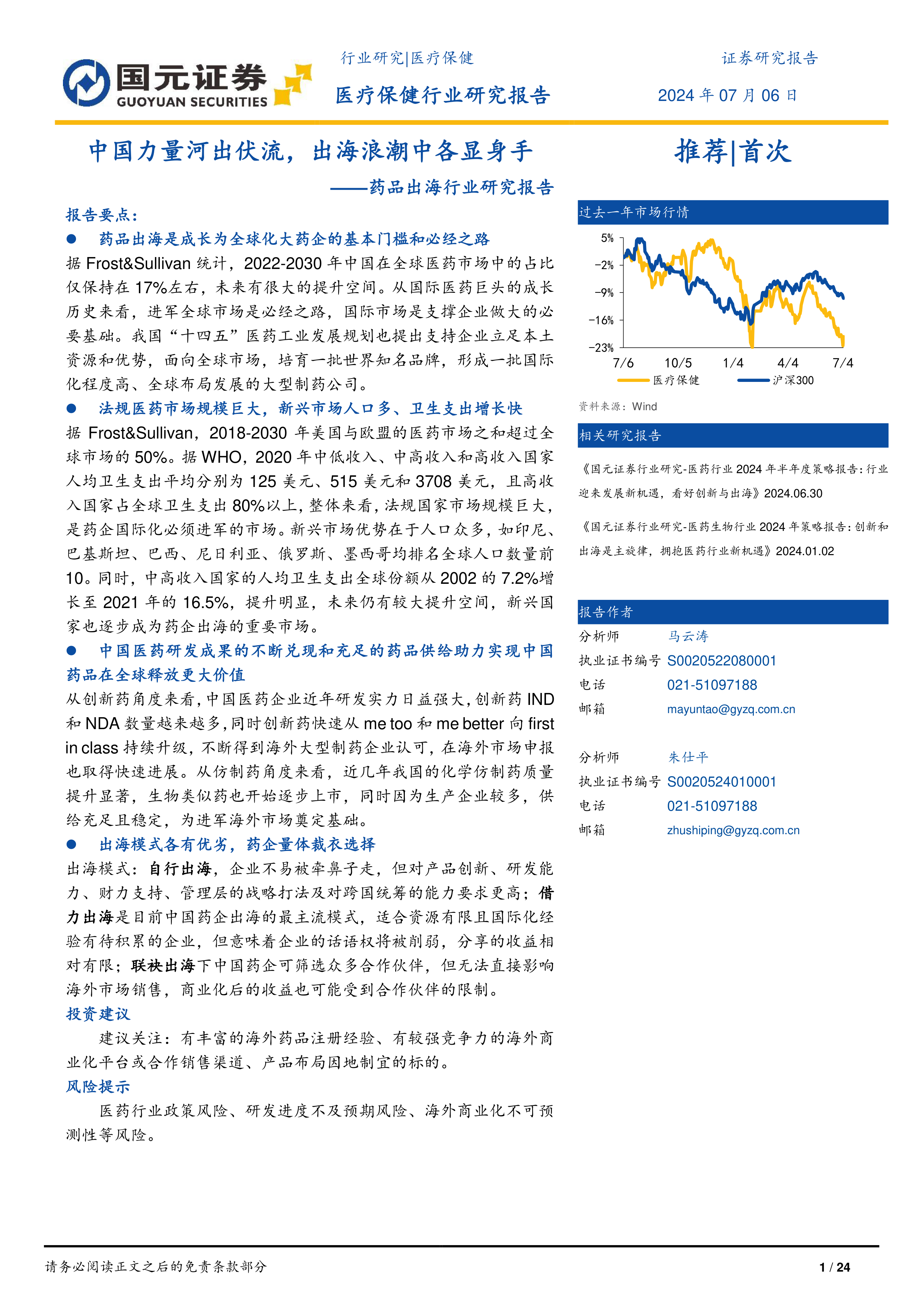 药品出海行业研究报告:中国力量河出伏流,出海浪潮中各显身手