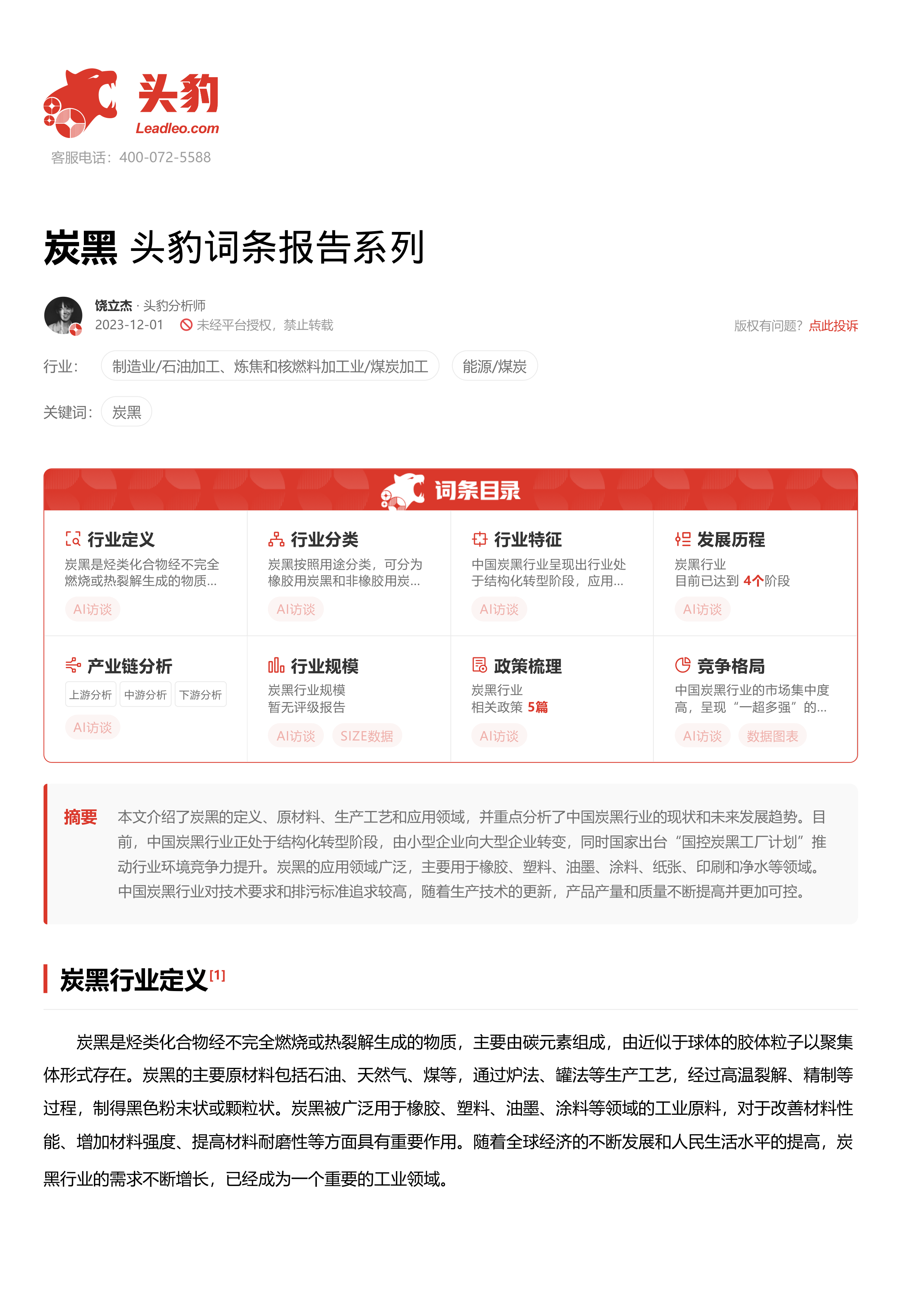 炭黑 头豹词条报告系列