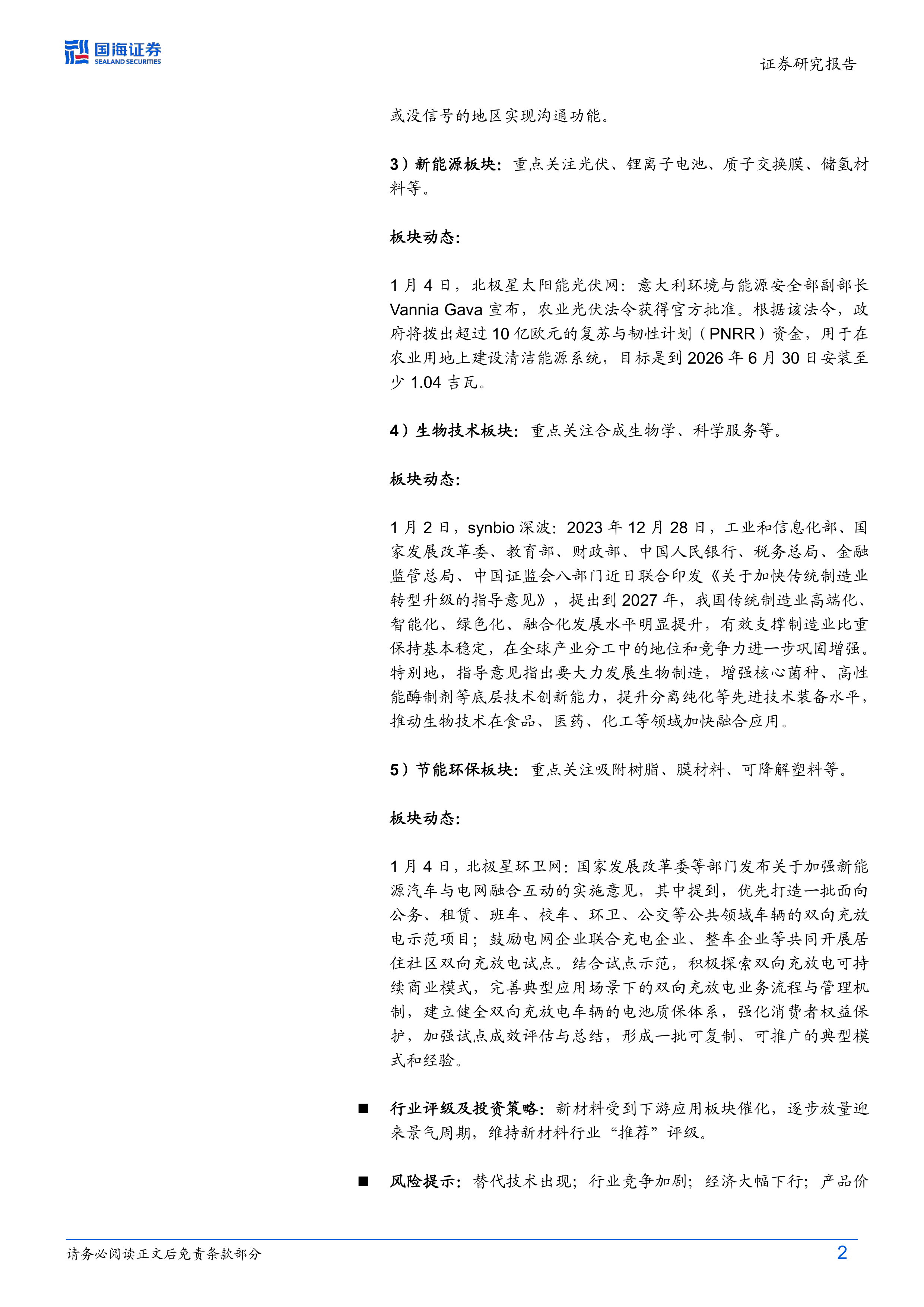 本报告对新材料行业进行了全面的分析,涵盖了电子信息、航空航天、新能源、生物技术和节能环保等多个细分领域。报告指出,新材料行业正处于下游需求爆发阶段,有望迎来加速成长期。通过对产业动态、关键数据、企业信息和板块表现的跟踪,报告为投资者提供了深入的行业洞察,并维持对新材料行业的“推荐”评级。同时,报告也提示了相关风险,为投资者提供了全面的参考。