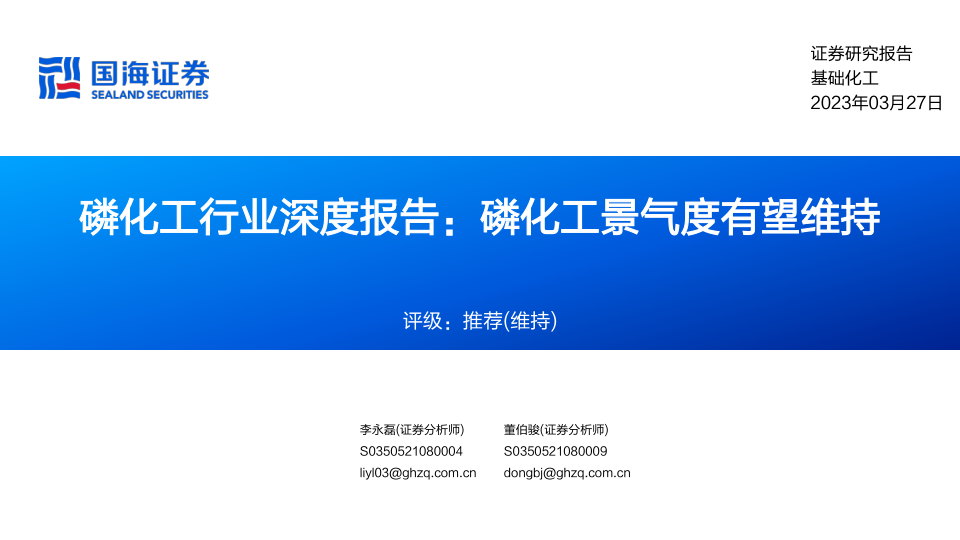 磷化工行业深度报告:磷化工景气度有望维持