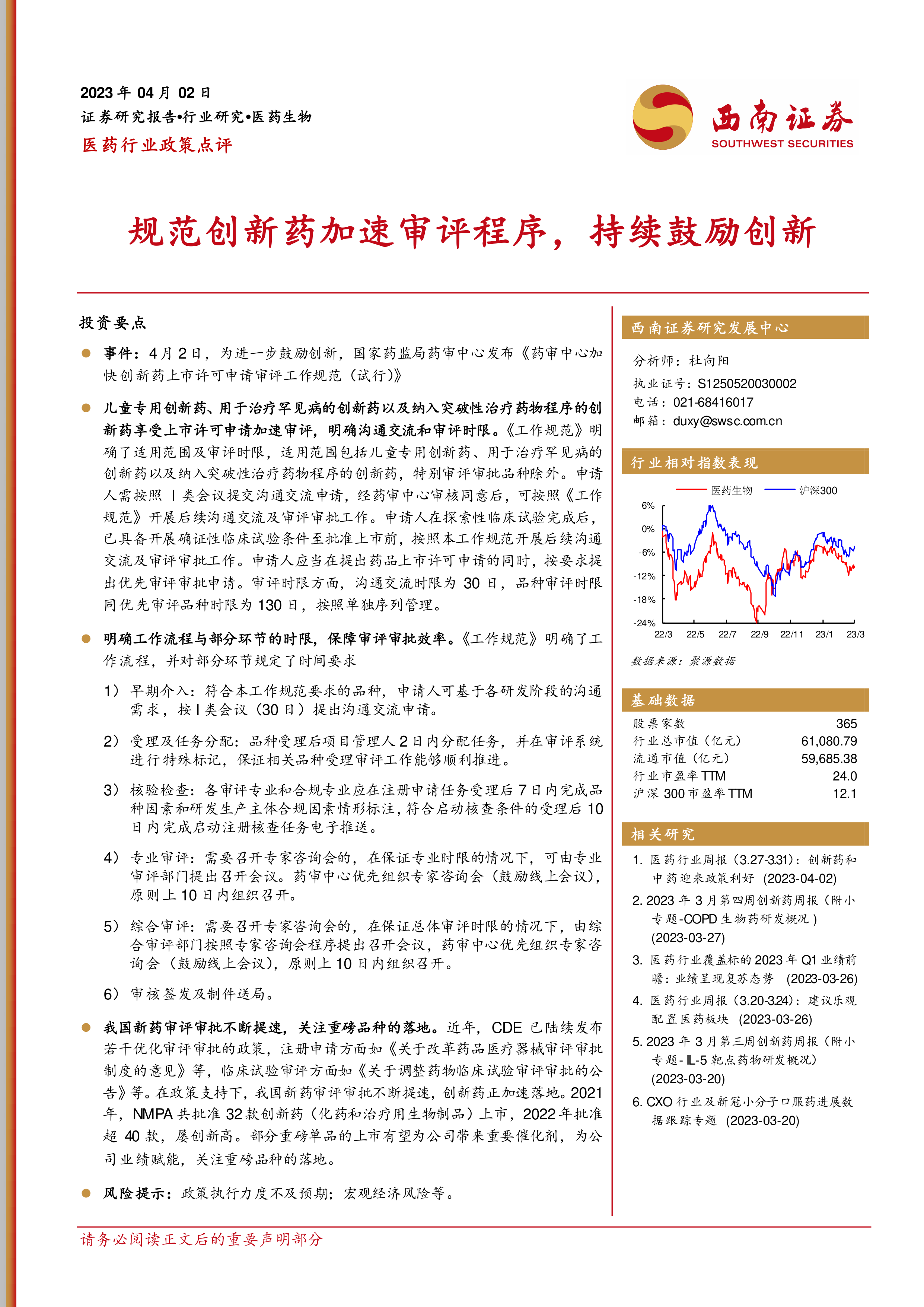 事件:4月2日,为进一步鼓励创新,国家药监局药审中心发布《药审中心加快创新药上市许可申请审评工作规范(试行)》