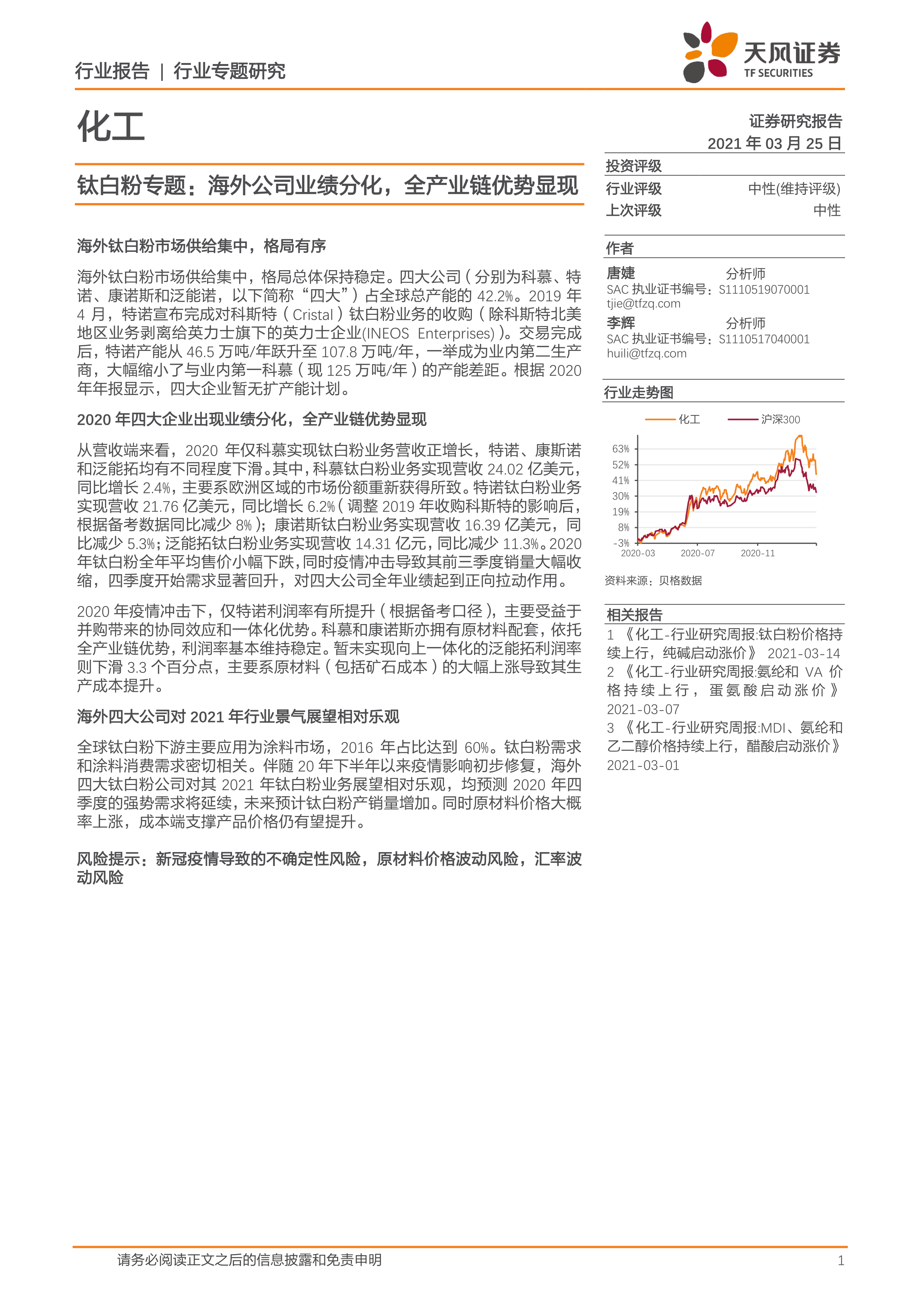 钛白粉专题:海外公司业绩分化,全产业链优势显现