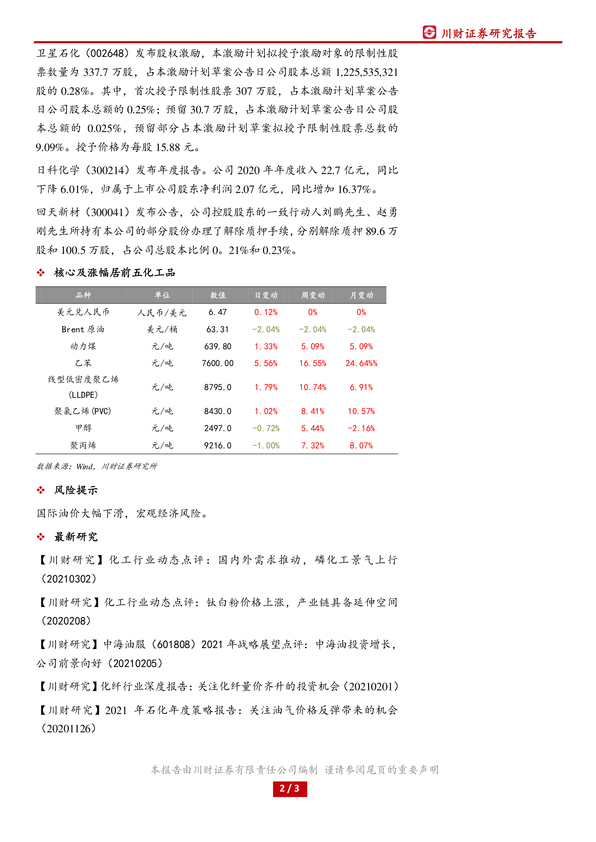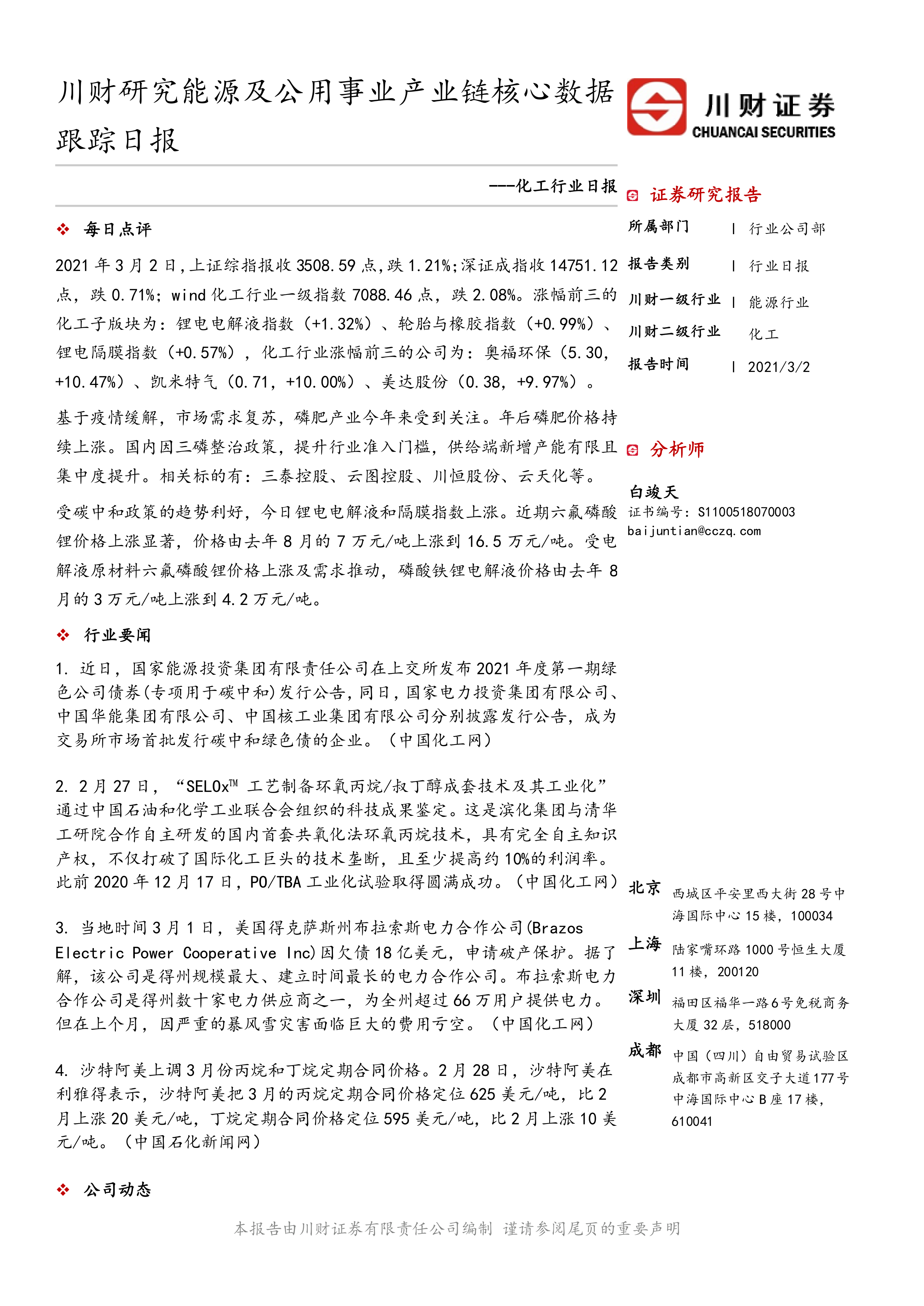 化工行业日报:川财研究能源及公用事业产业链核心数据跟踪日报