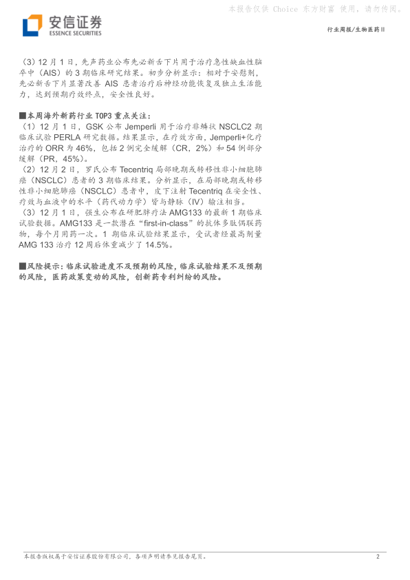 本周海外新药行业TOP3重点关注: