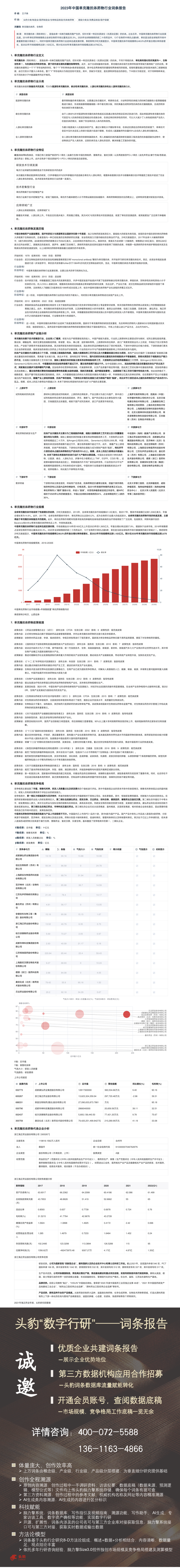 本报告深入分析了中国单克隆抗体药物行业的市场现状、发展趋势、政策支持、竞争格局和代表企业。 报告指出,中国单抗市场增长迅速,但技术水平仍有提升空间。 技术创新、政策支持和市场竞争是推动行业发展的重要因素。 报告对行业未来发展持乐观态度,并强调了企业在研发、生产和市场策略方面的重要性。