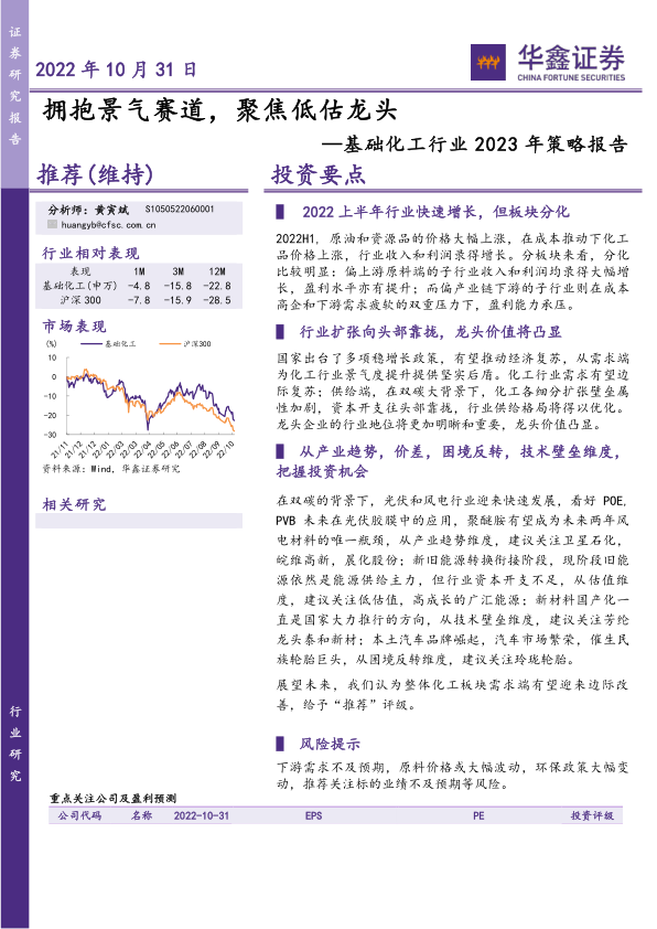 基础化工行业2023年策略报告:拥抱景气赛道,聚焦低估龙头