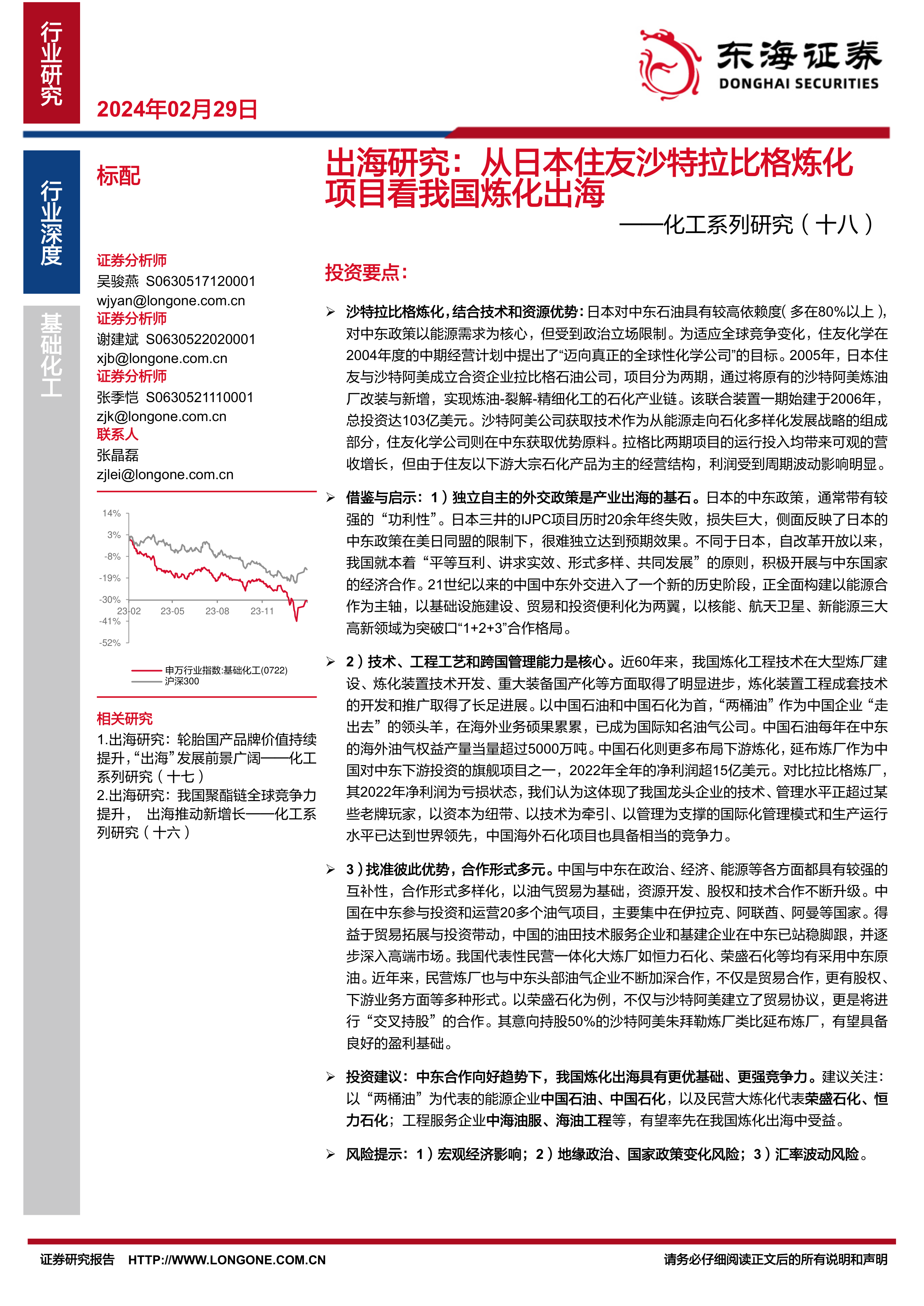 化工系列研究(十八):出海研究:从日本住友沙特拉比格炼化项目看我国炼化出海
