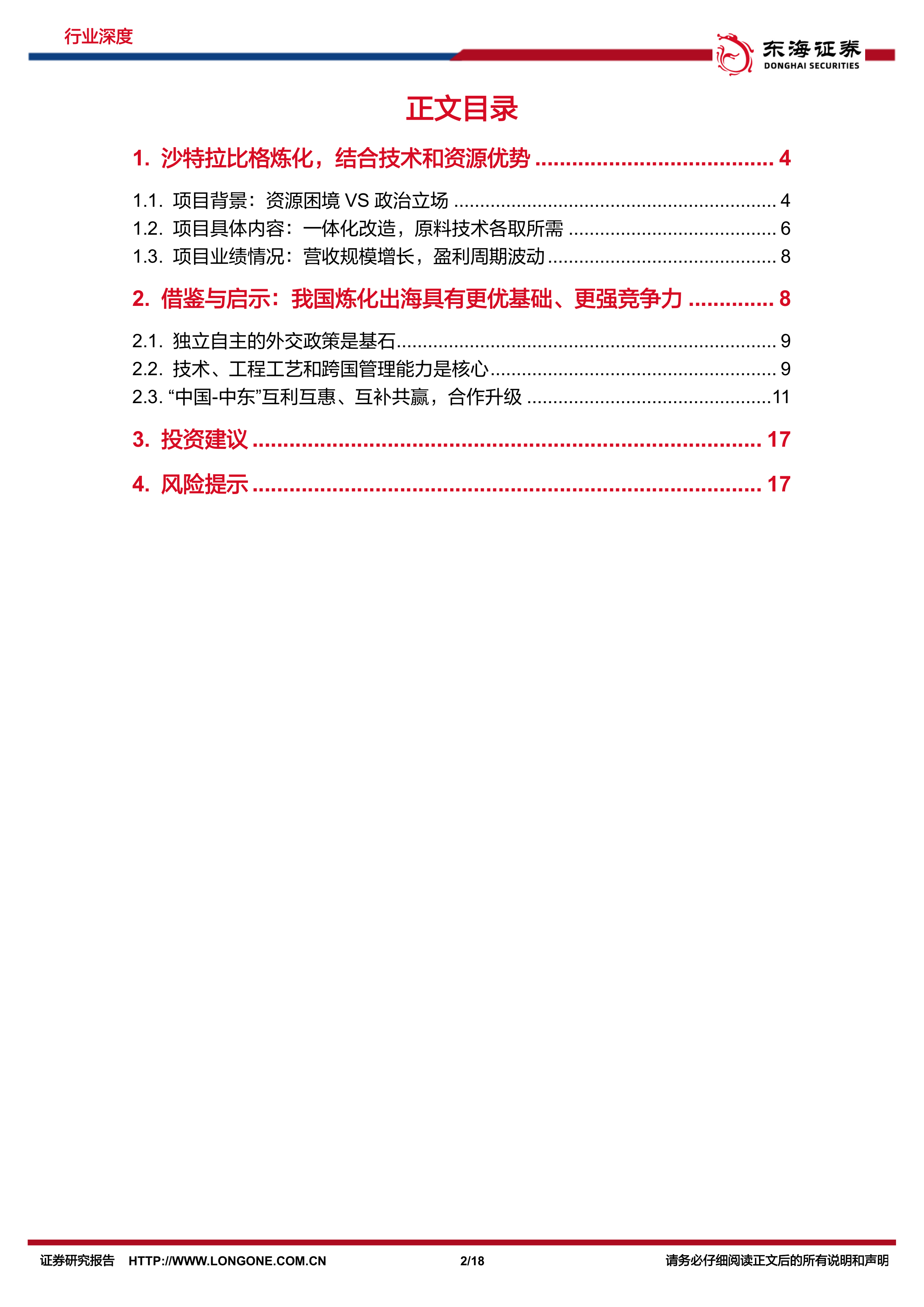 2)技术、工程工艺和跨国管理能力是核心。近60年来,我国炼化工程技术在大型炼厂建设、炼化装置技术开发、重大装备国产化等方面取得了明显进步,炼化装置工程成套技术的开发和推广取得了长足进展。以中国石油和中国石化为首,“两桶油”作为中国企业“走出去”的领头羊,在海外业务硕果累累,已成为国际知名油气公司。中国石油每年在中东的海外油气权益产量当量超过5000万吨。中国石化则更多布局下游炼化,延布炼厂作为中国对中东下游投资的旗舰项目之一,2022年全年的净利润超15亿美元。对比拉比格炼厂其2022年净利润为亏损状态,我们认为这体现了我国龙头企业的技术、管理水平正超过某些老牌玩家,以资本为纽带、以技术为牵引、以管理为支撑的国际化管理模式和生产运行水平已达到世界领先,中国海外石化项目也具备相当的竞争力。