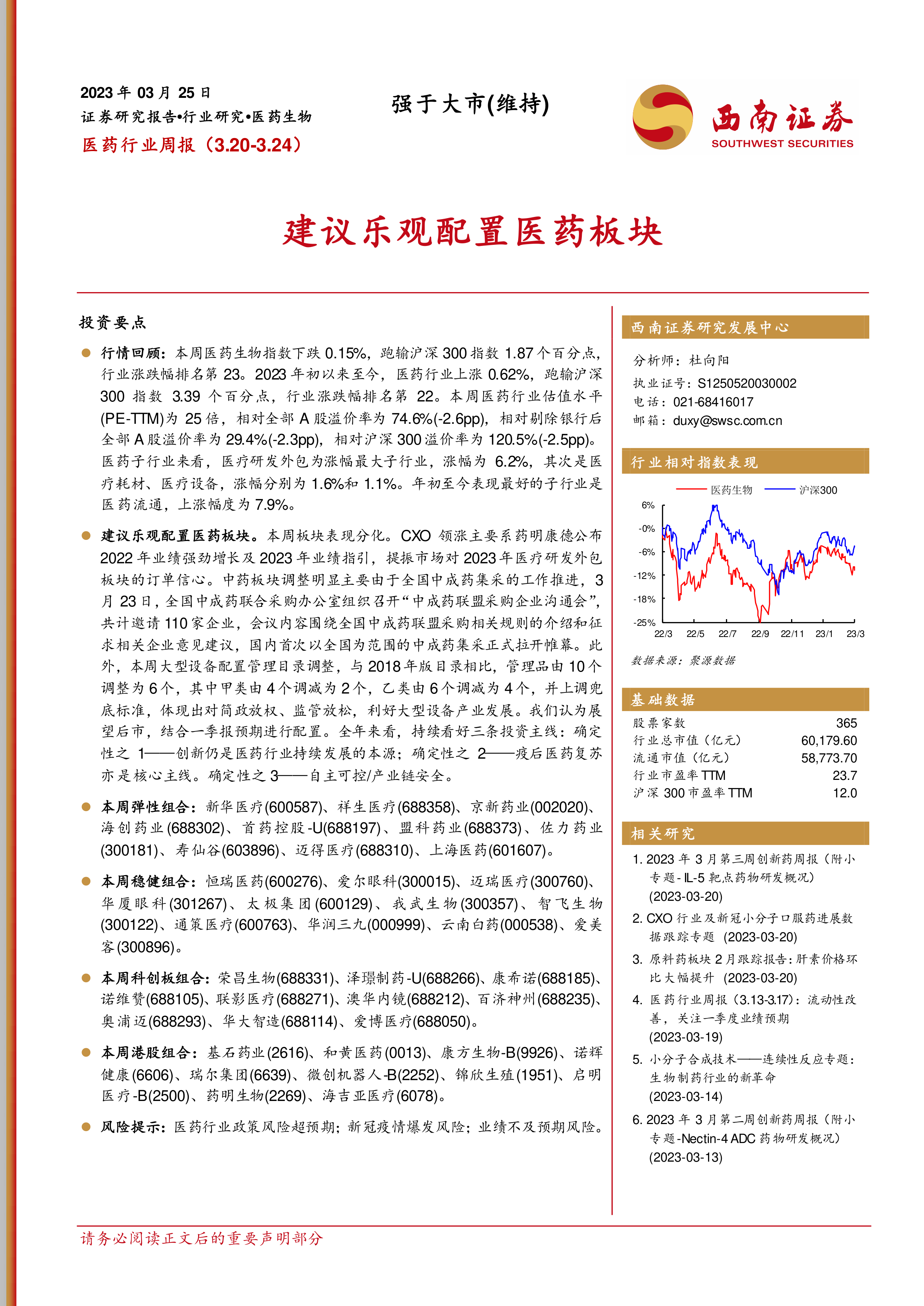 风险提示:医药行业政策风险超预期;新冠疫情爆发风险;业绩不及预期风险。