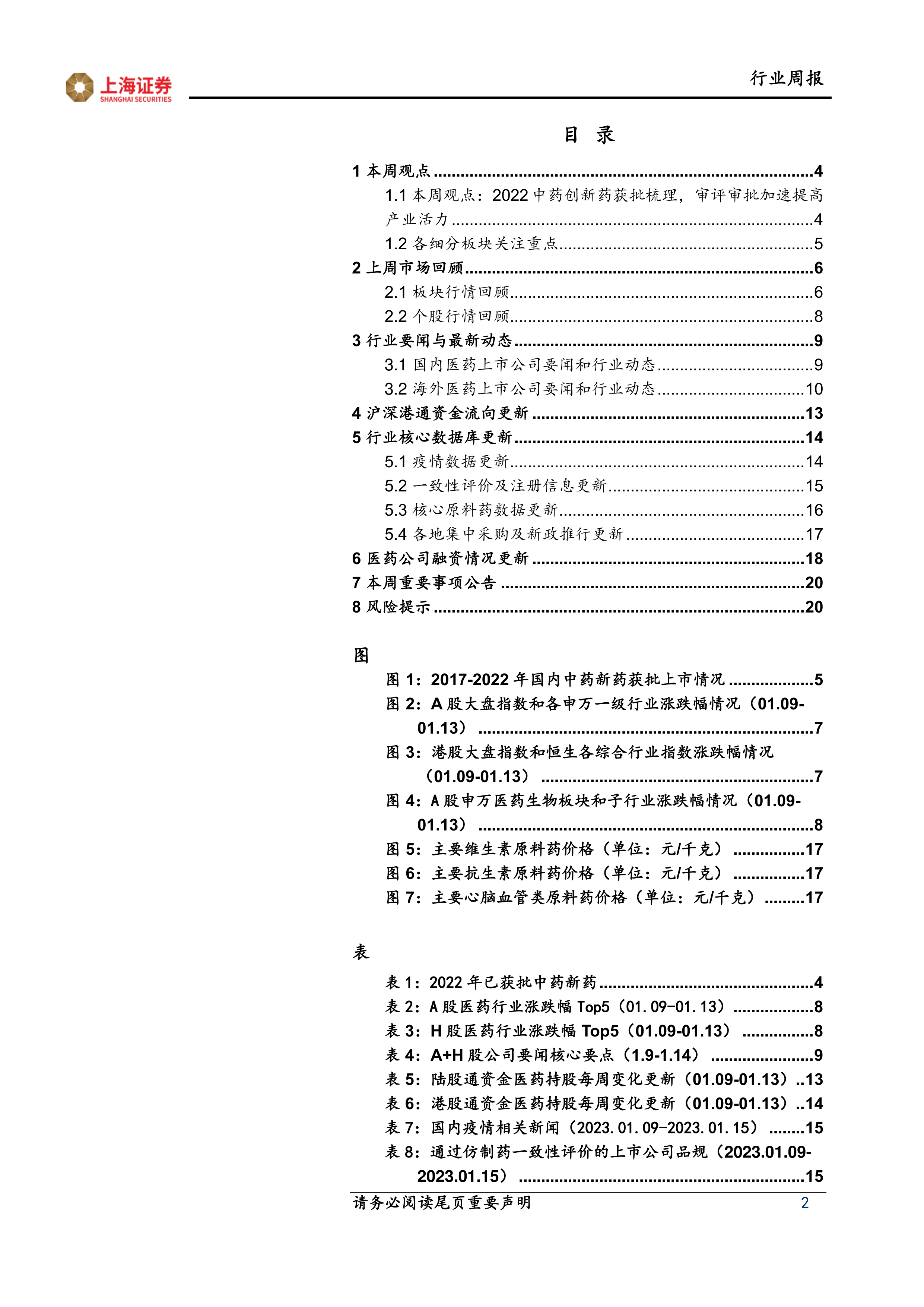 本周报重点关注了中药创新药获批加速、行业政策支持以及市场表现。报告分析了 2022 年中药创新药获批情况,并强调了政策对行业发展的积极影响。同时,报告回顾了上周医药生物行业的市场表现,并对细分板块进行了分析。此外,报告还提供了行业要闻、资金流向、核心数据库更新、融资情况和风险提示等信息,为投资者提供了全面的行业分析和投资参考。
