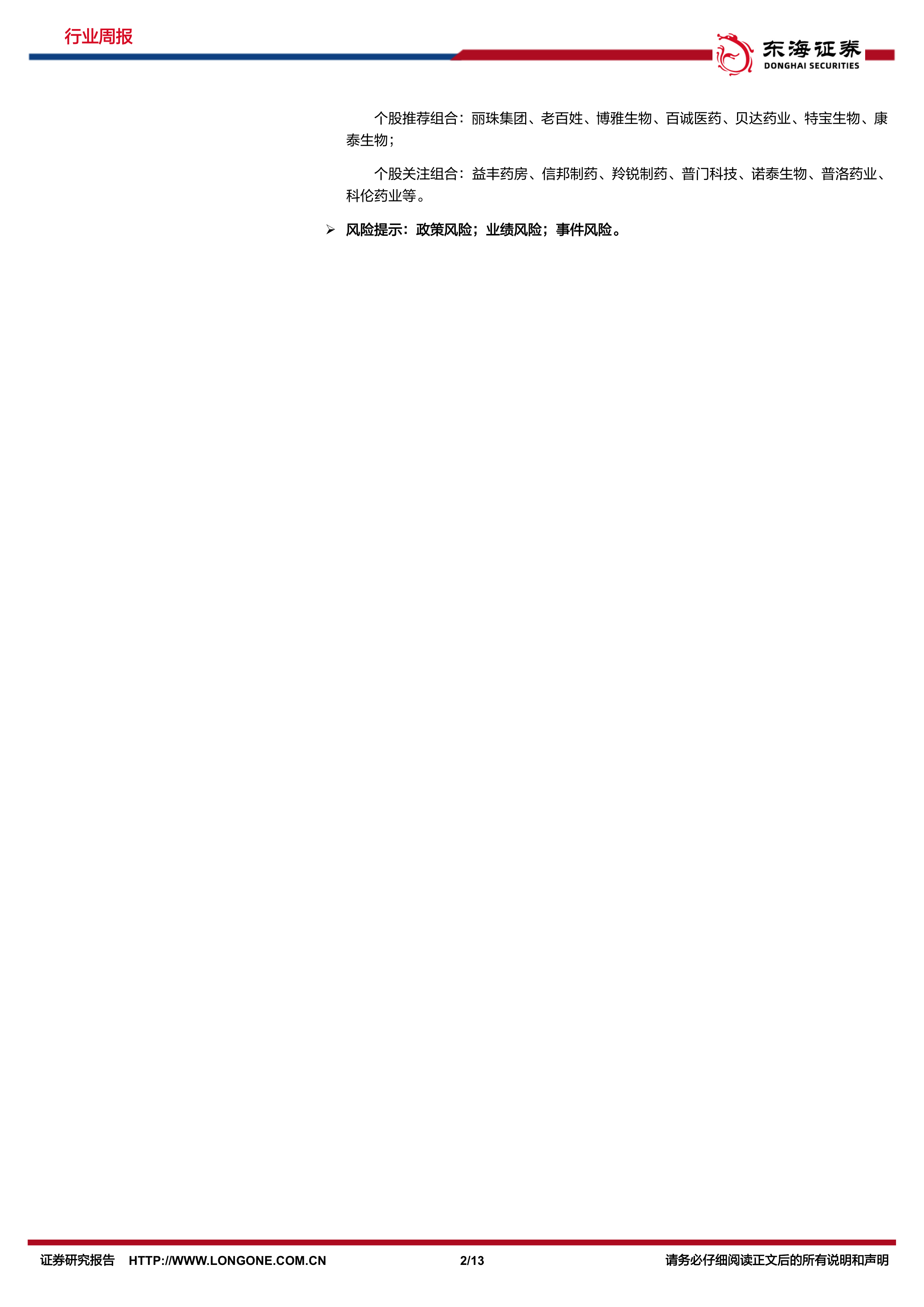 个股关注组合:益丰药房、信邦制药、羚锐制药、普门科技、诺泰生物、普洛药业、科伦药业等。