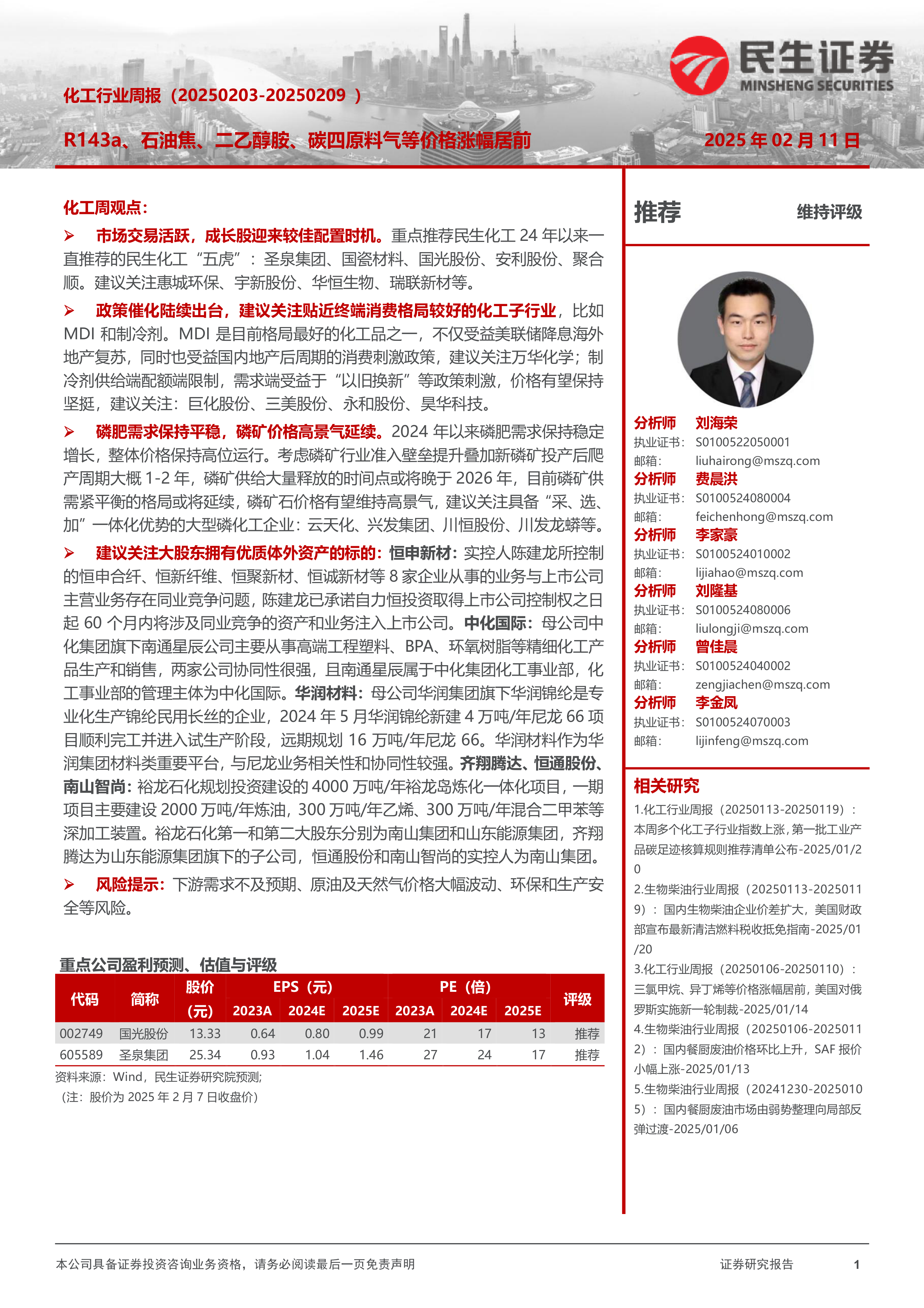 风险提示:下游需求不及预期、原油及天然气价格大幅波动、环保和生产安全等风险。