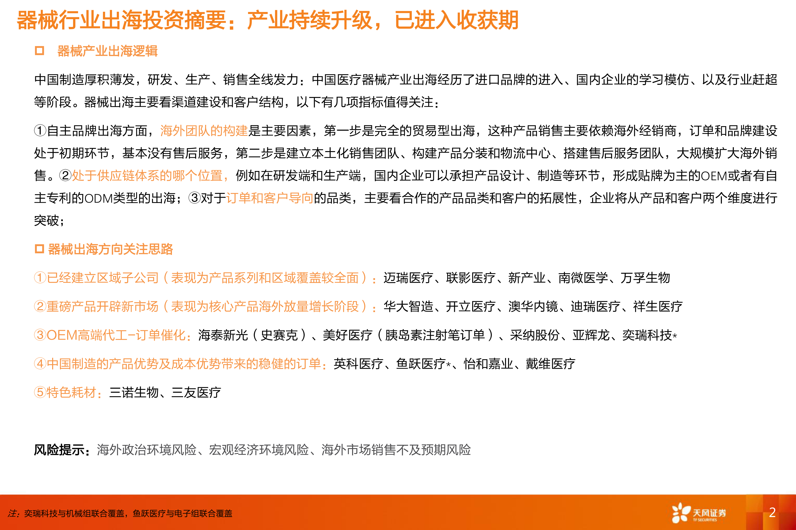 器械出海方向关注思路