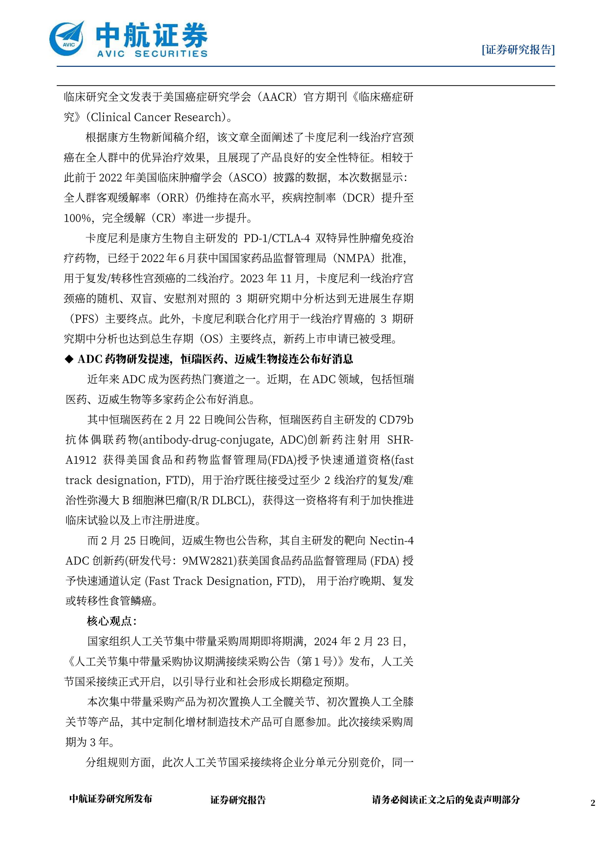 国家组织人工关节集中带量采购周期即将期满,2024年2月23日,《人工关节集中带量采购协议期满接续采购公告(第1号)》发布,人工关节国采接续正式开启,以引导行业和社会形成长期稳定预期。