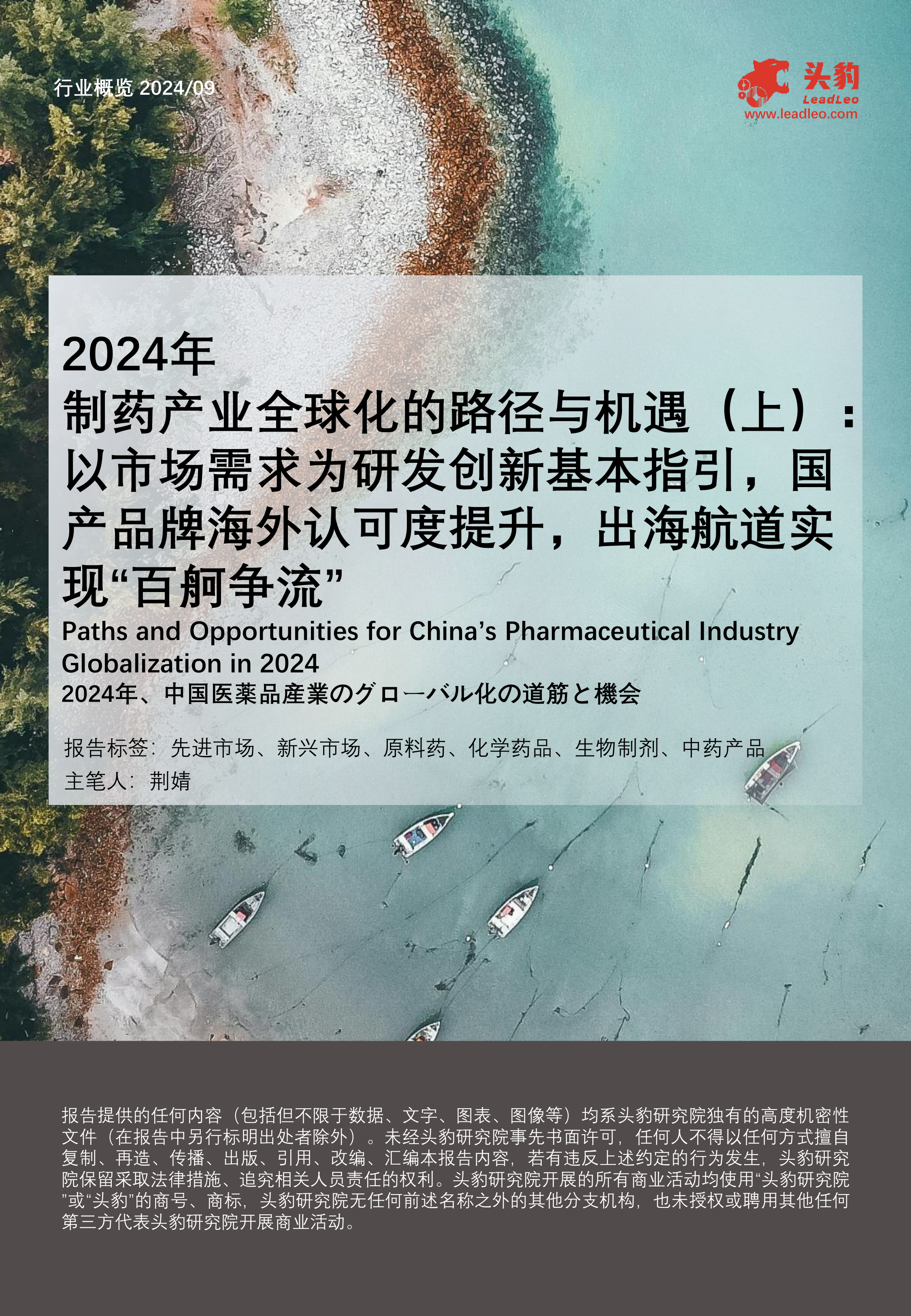 2024年制药产业全球化的路径与机遇(上):以市场需求为研发创新基本指引,国产品牌海外认可度提升,出海航道实现“百舸争流”