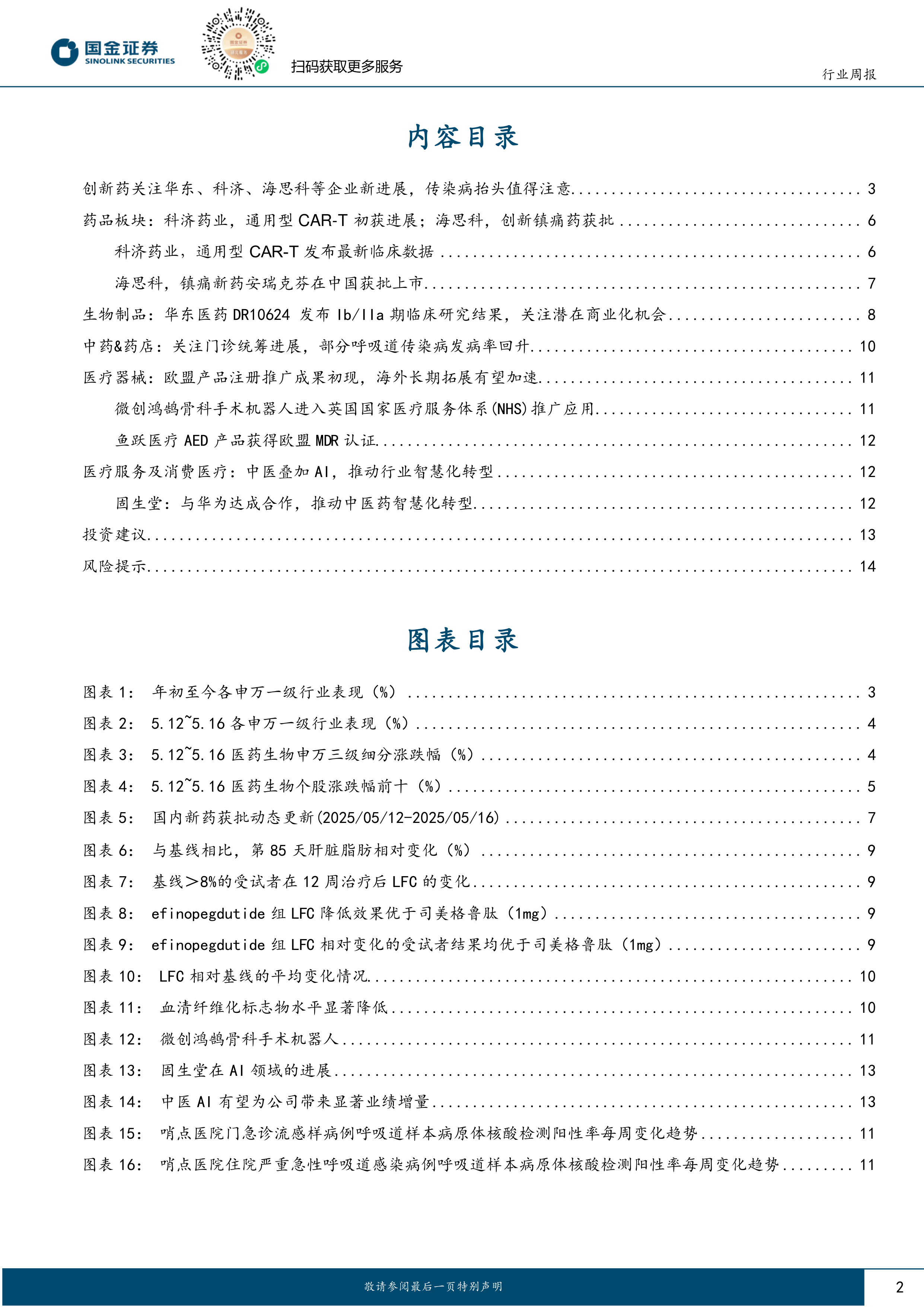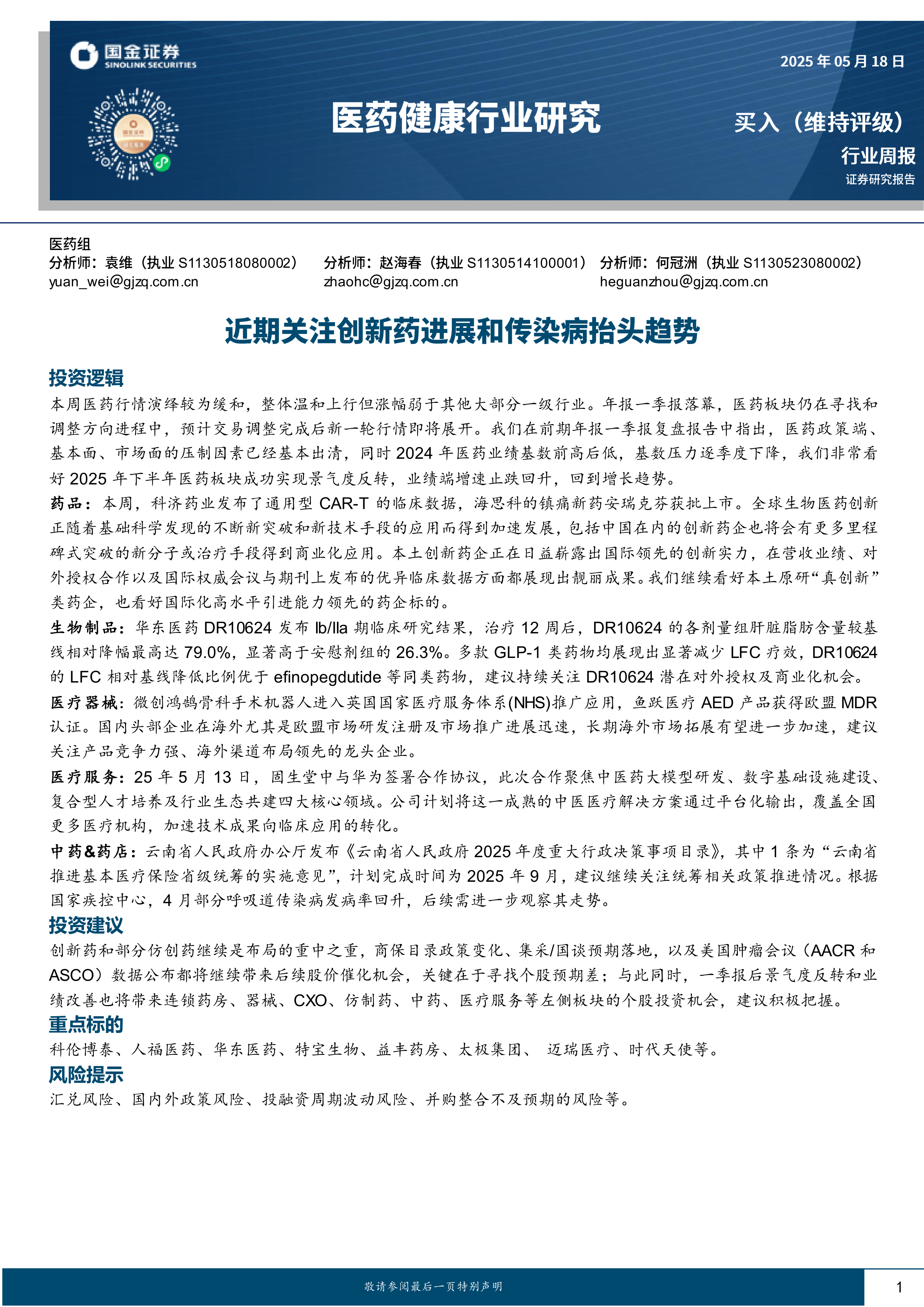 医药健康行业研究:近期关注创新药进展和传染病抬头趋势