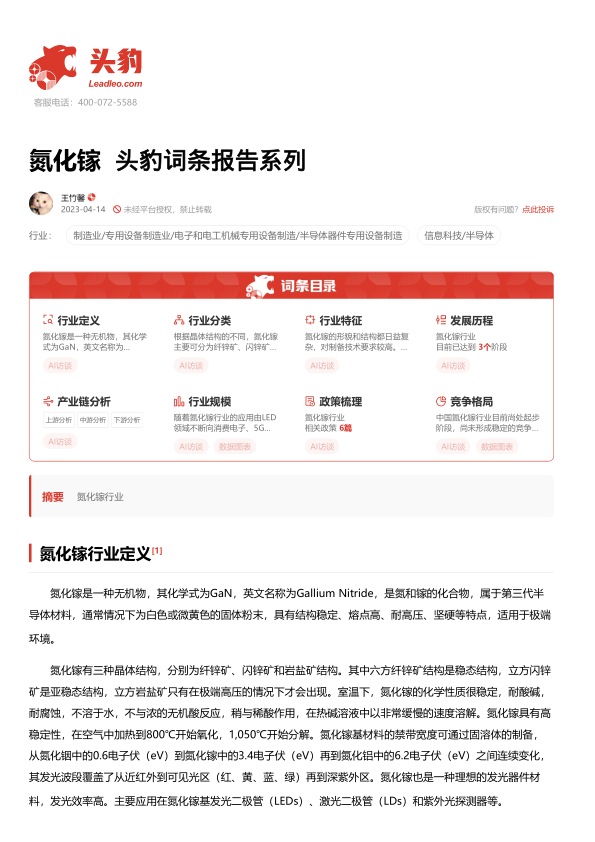 2023年中国氮化镓行业词条报告