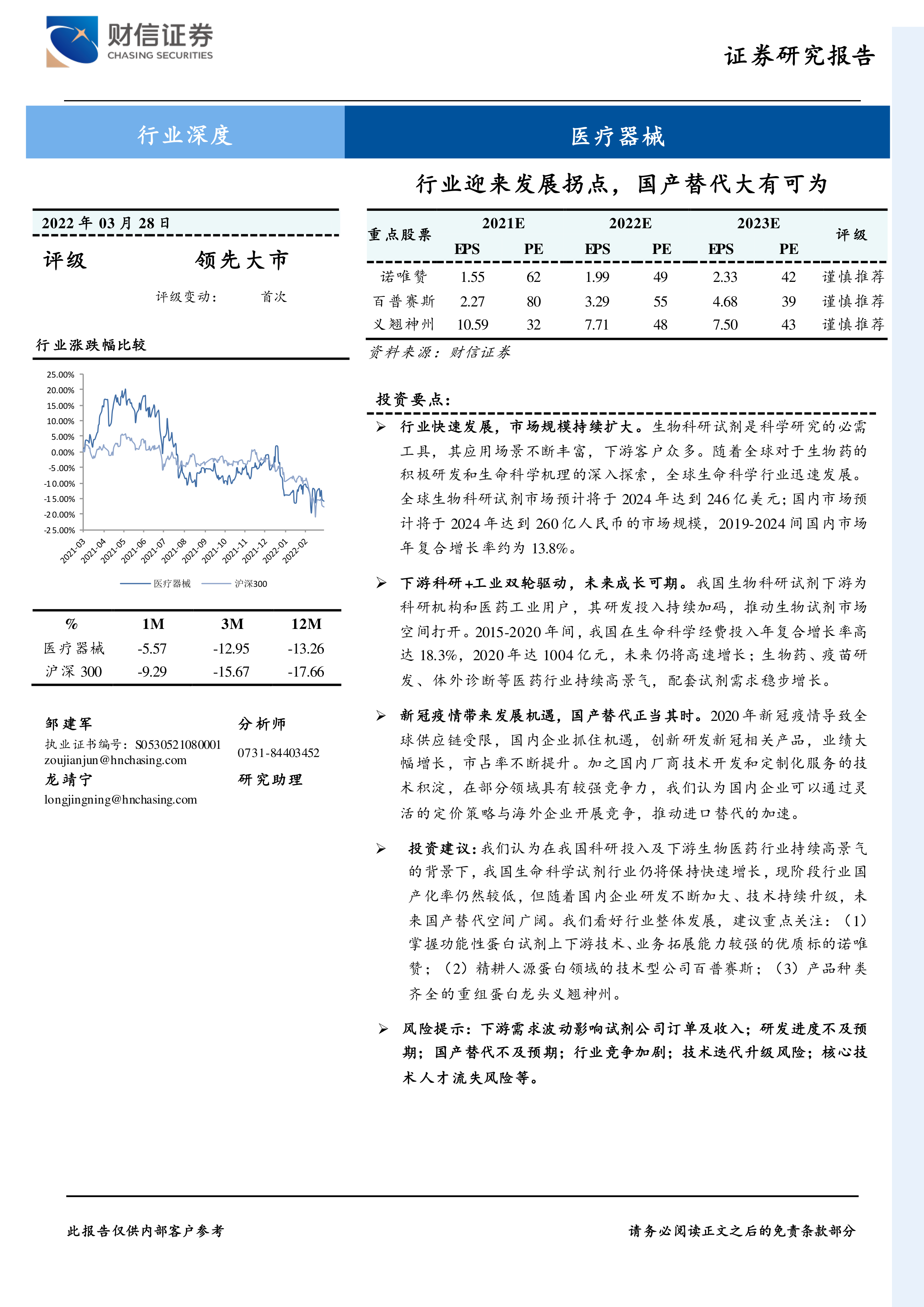 风险提示:下游需求波动影响试剂公司订单及收入;研发进度不及预期;国产替代不及预期;行业竞争加剧;技术迭代升级风险;核心技术人才流失风险等。