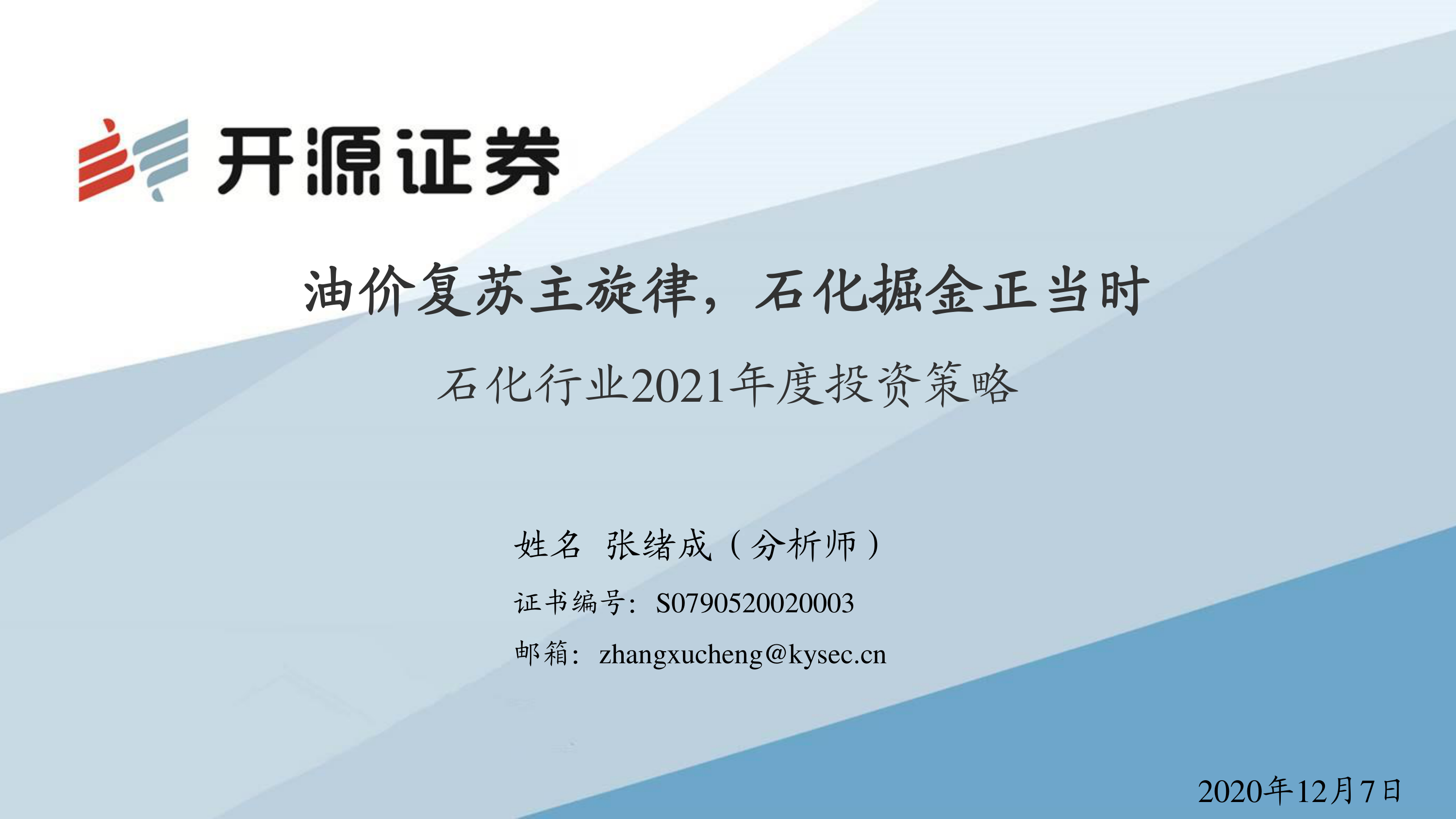石化行业2021年度投资策略:油价复苏主旋律,石化掘金正当时