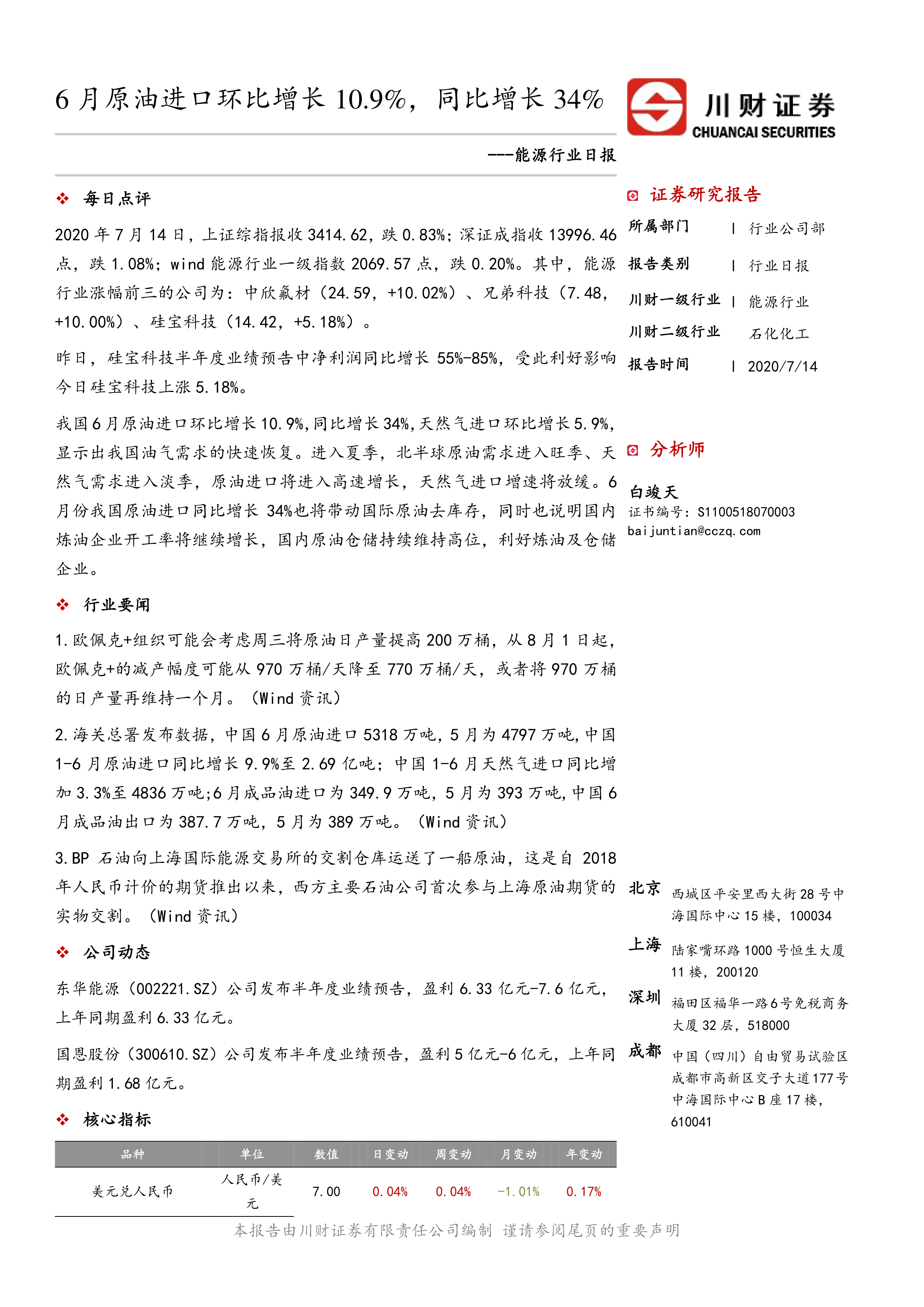 能源行业日报:6月原油进口环比增长10.9%,同比增长34%