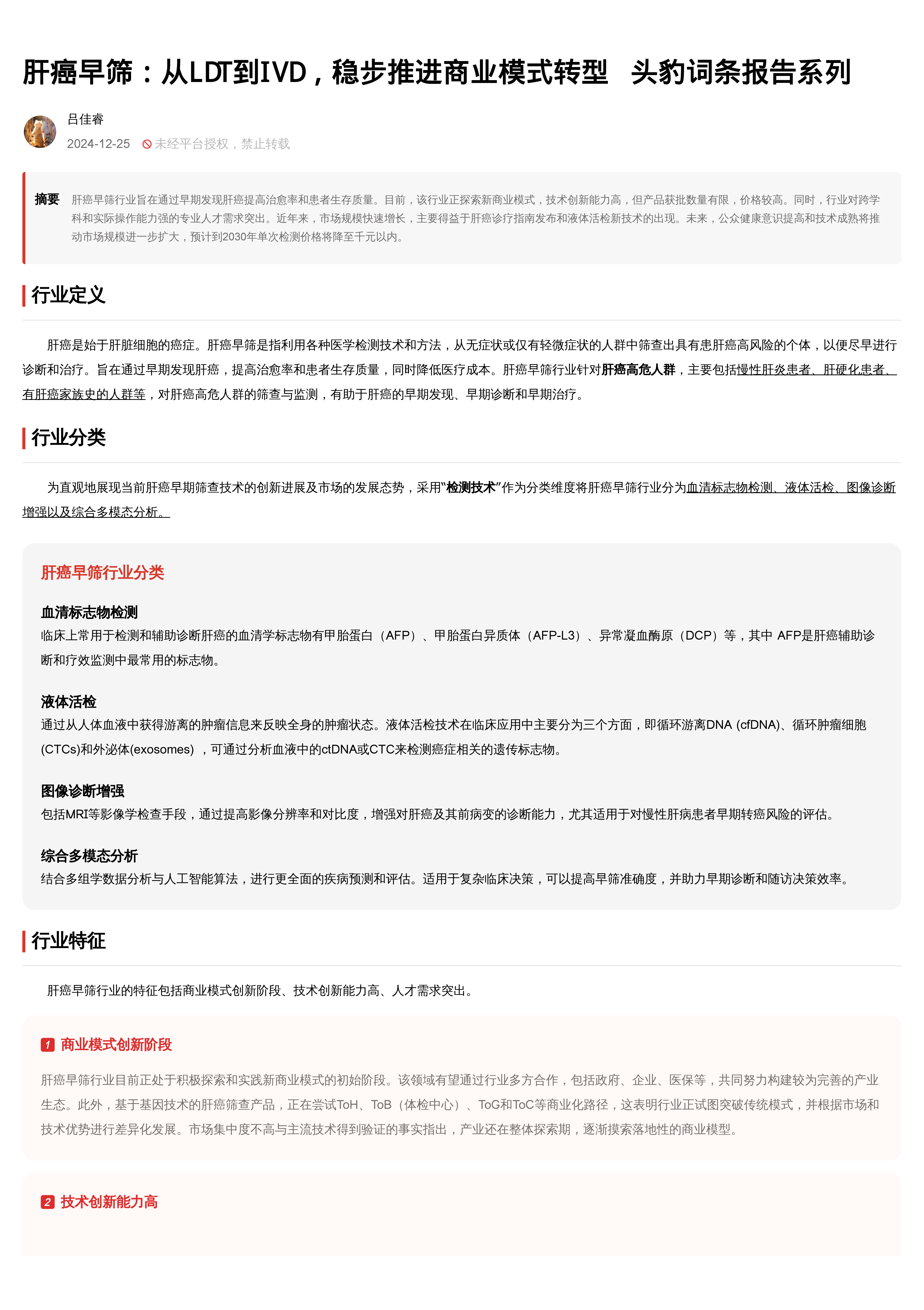 肝癌早筛:从LDT到IVD,稳步推进商业模式转型 头豹词条报告系列