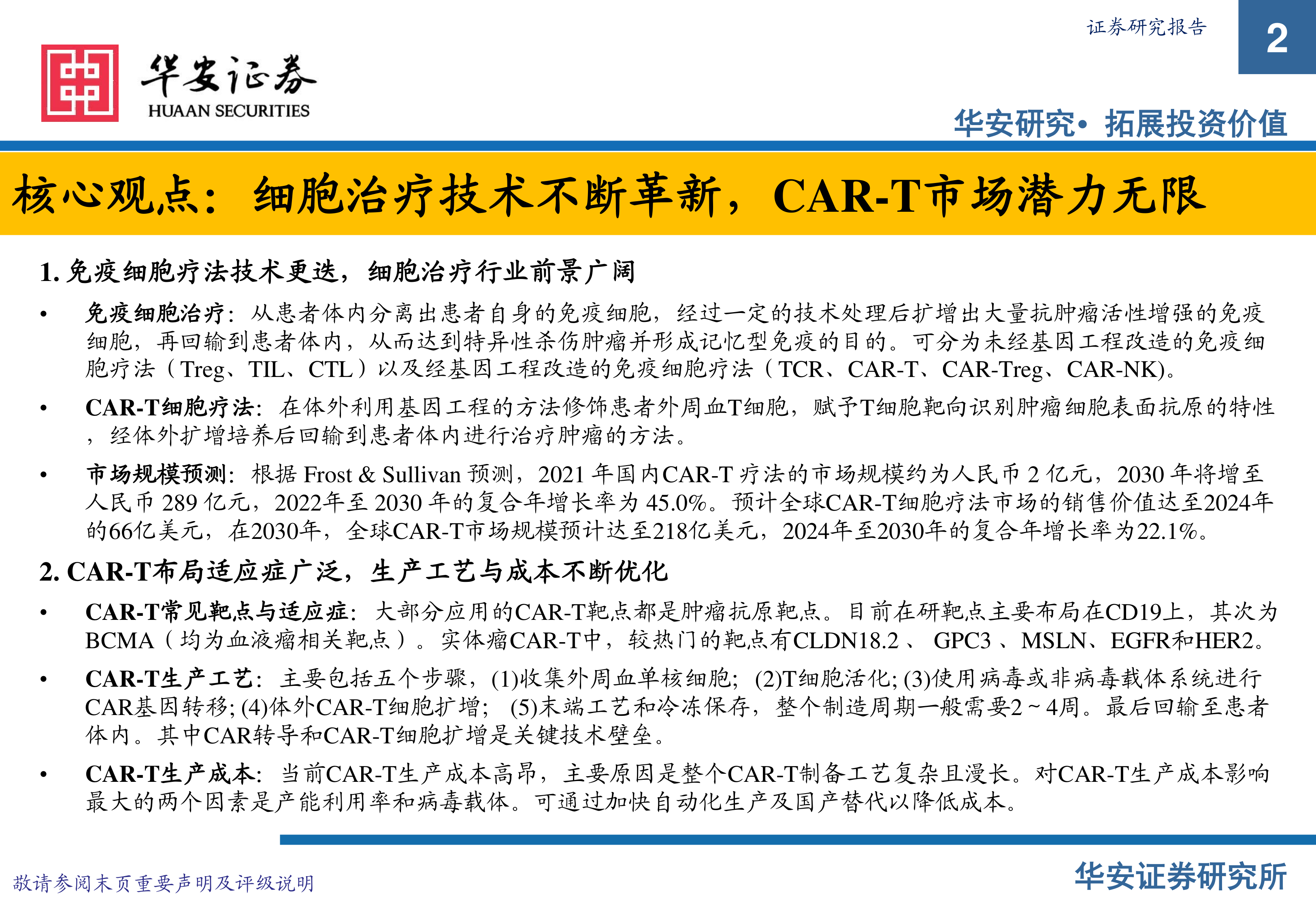 核心观点:细胞治疗技术不断革新,CAR-T市场潜力无限