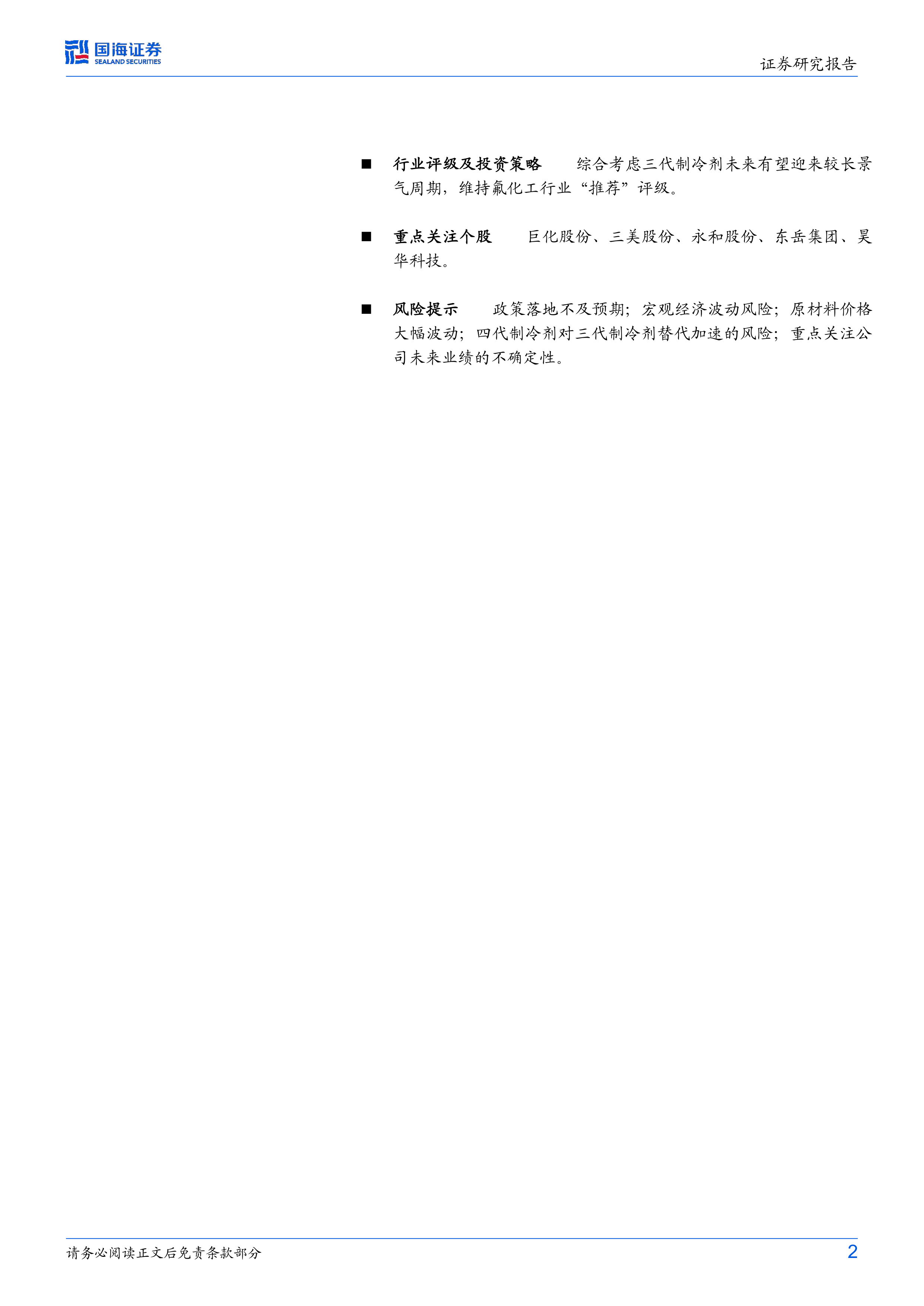 行业评级及投资策略综合考虑三代制冷剂未来有望迎来较长景气周期,维持氟化工行业“推荐”评级。