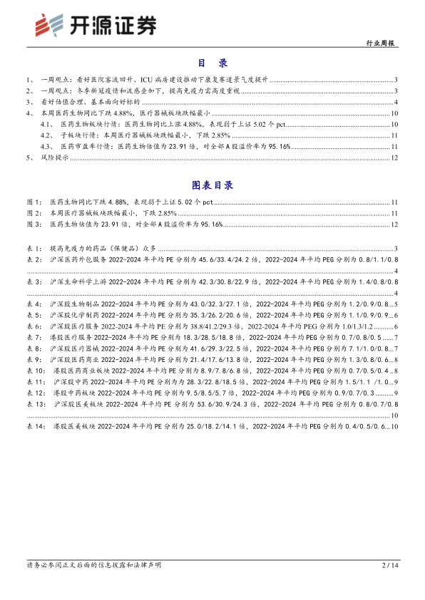 推荐标的:长线组合:迈瑞医疗、开立医疗、澳华内镜、海泰新光、泰格医药、康龙化成、博腾股份、羚锐制药、康缘药业、人福医药、东诚药业、益丰药房、老百姓、健之佳、海吉亚医疗、新天药业、以岭药业、寿仙谷、盈康生命、伟思医疗、华东医药。弹性组合:海尔生物、采纳股份、昌红科技、康拓医疗、中国中药、太极集团、国际医学、皓元医药、药石科技、美迪西、江苏吴中
