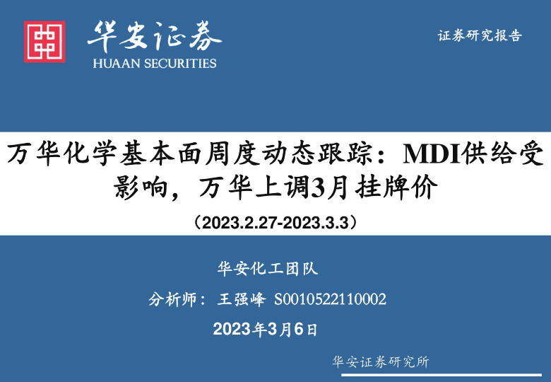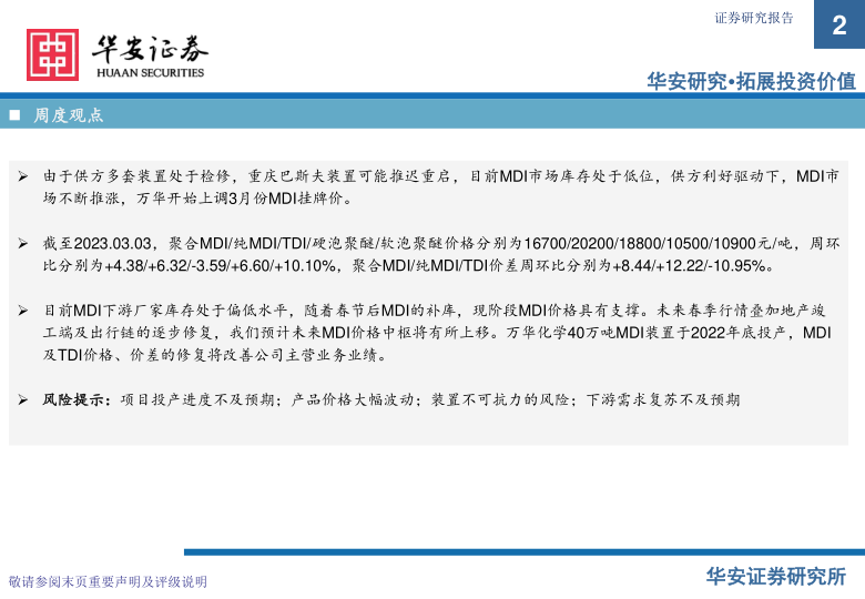 基础化工:万华化学基本面周度动态跟踪:MDI供给受影响,万华上调3月挂牌价