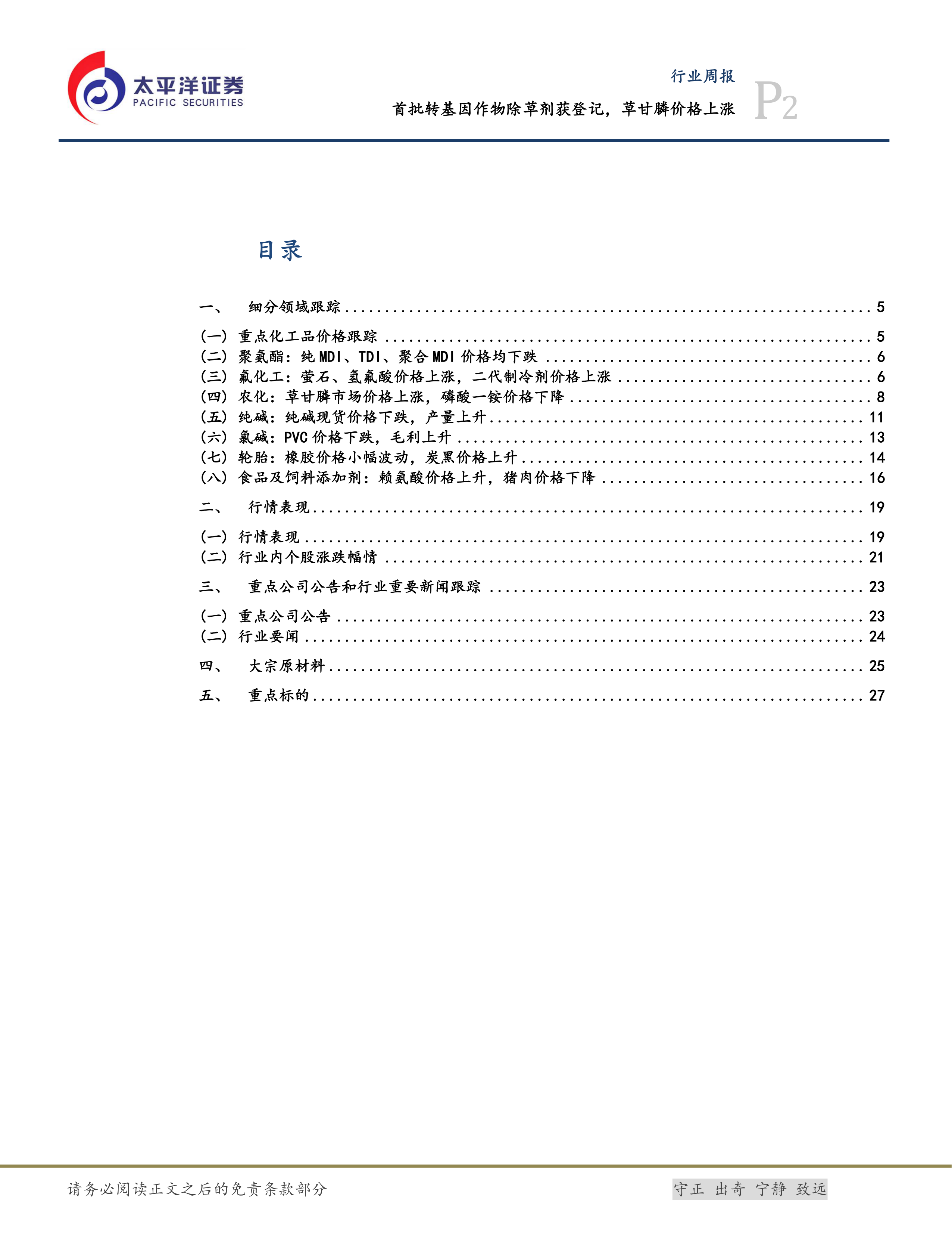 基础化工行业周报:首批转基因作物除草剂获登记,草甘膦价格上涨