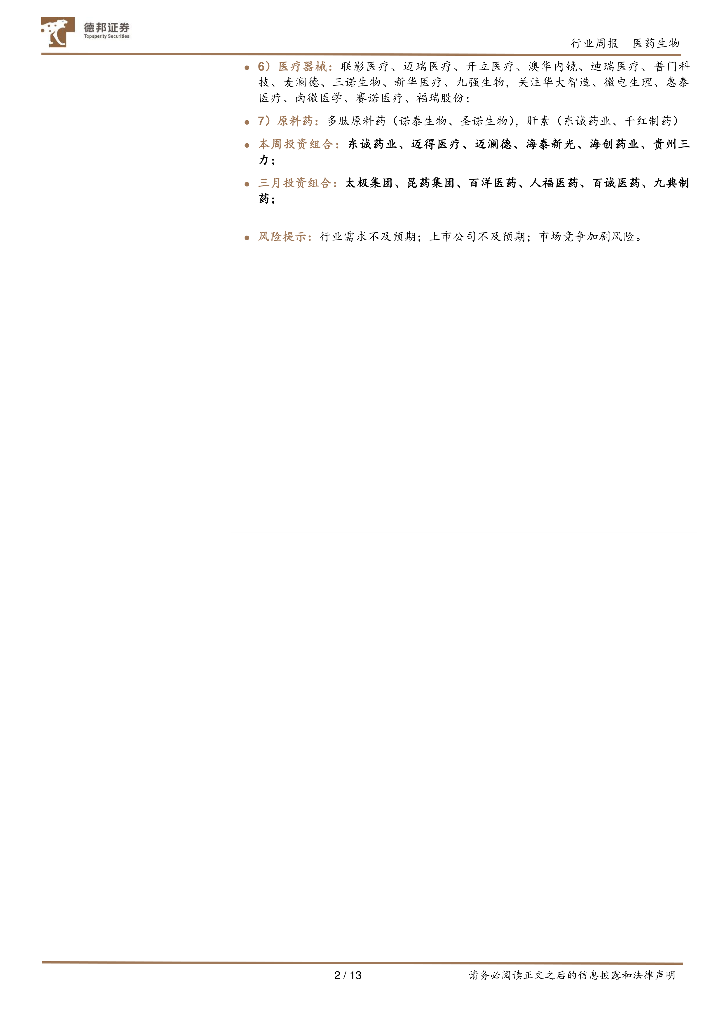 本周投资组合:东诚药业、迈得医疗、迈澜德、海泰新光、海创药业、贵州三力;