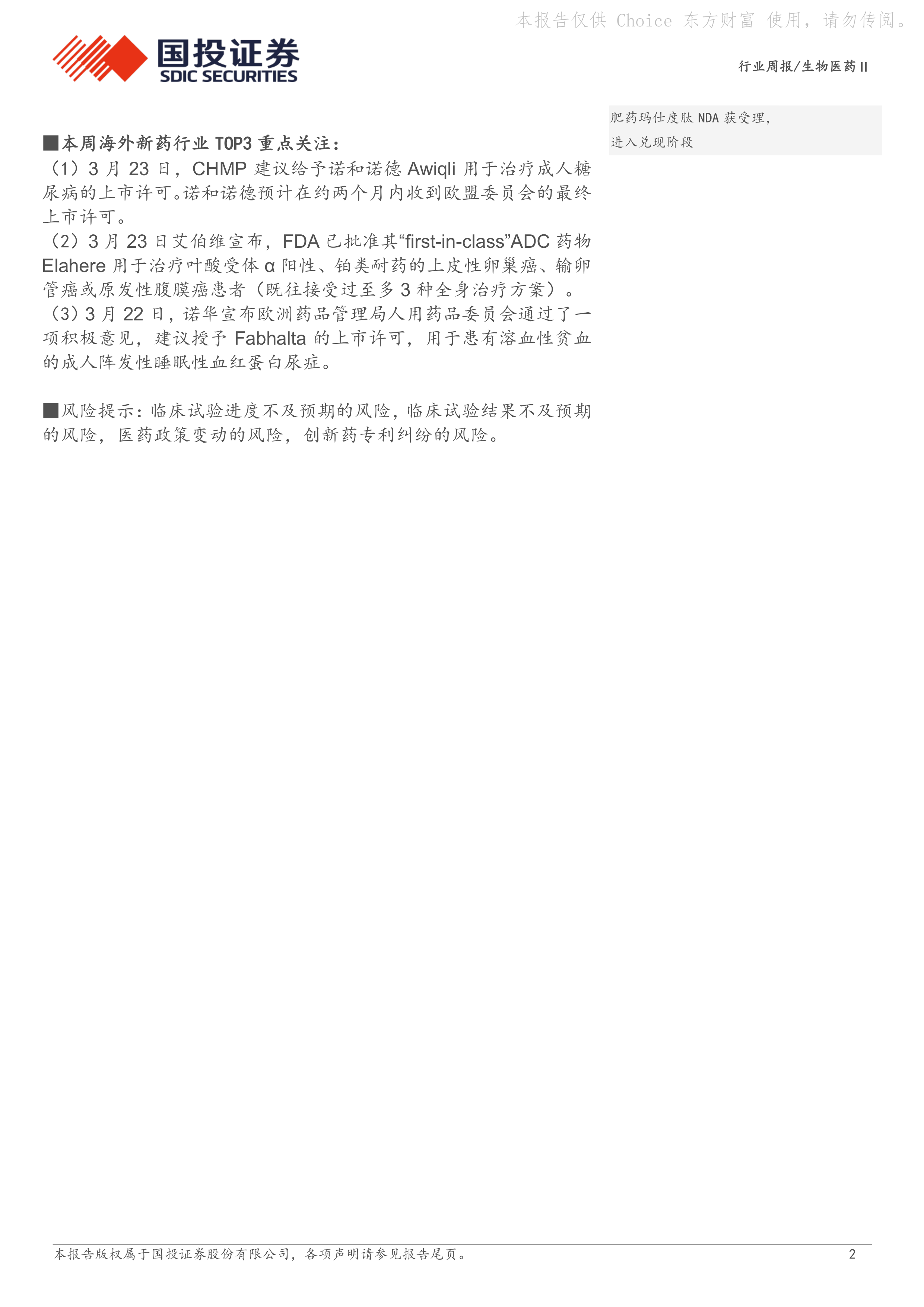 本周国内新药行业TOP3重点关注: