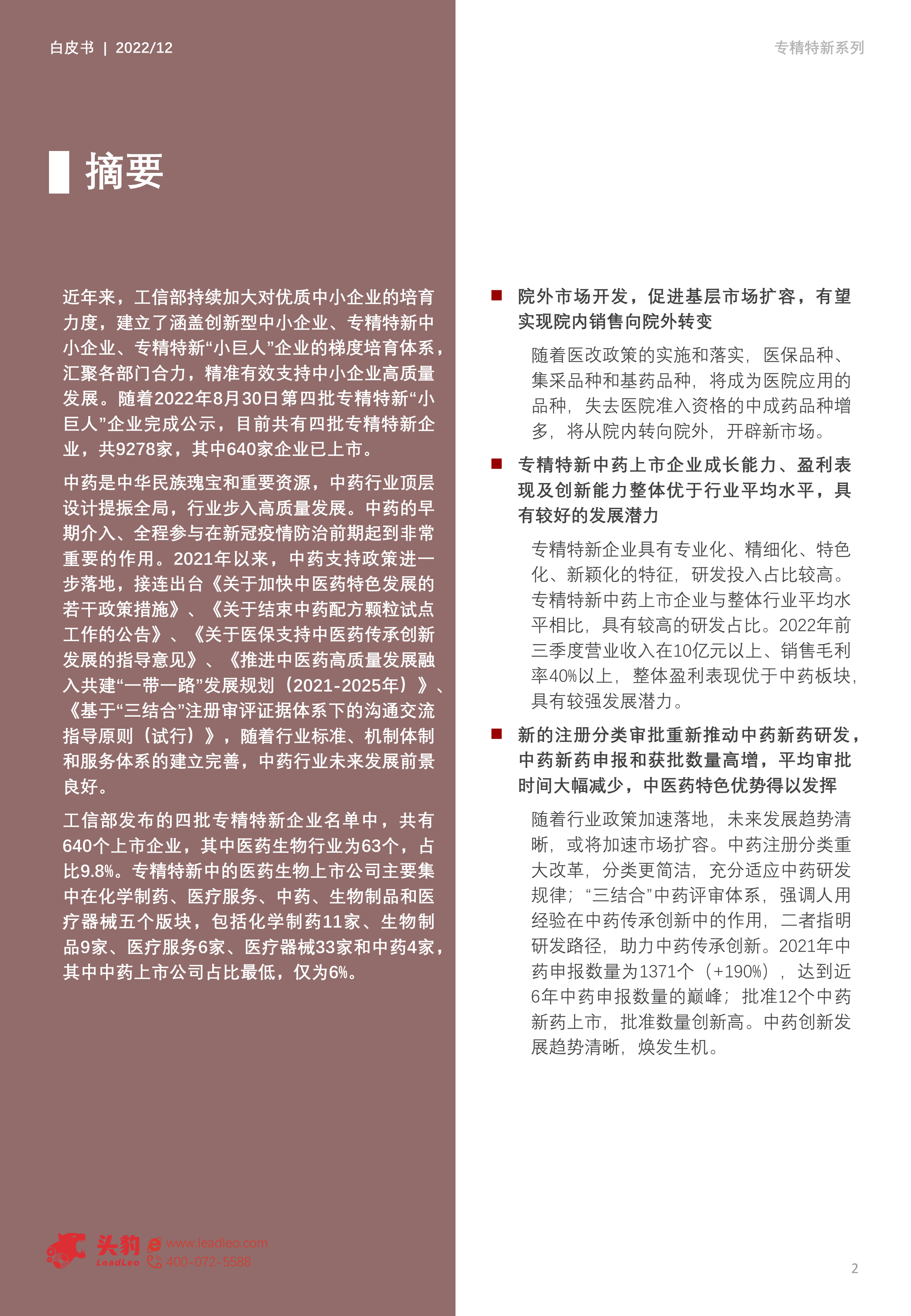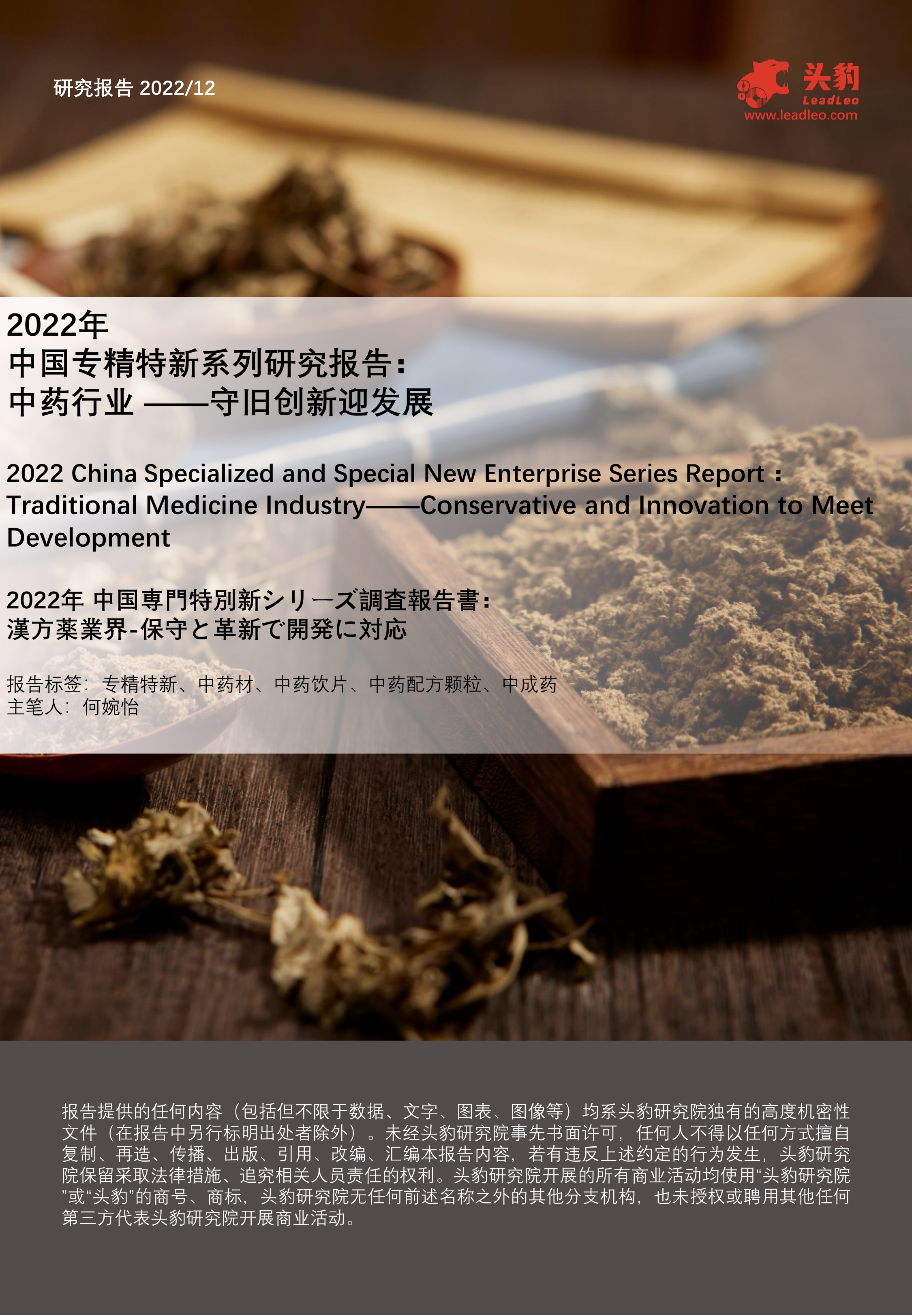 2022年中国专精特新系列研究报告:中药行业 ――守旧创新迎发展