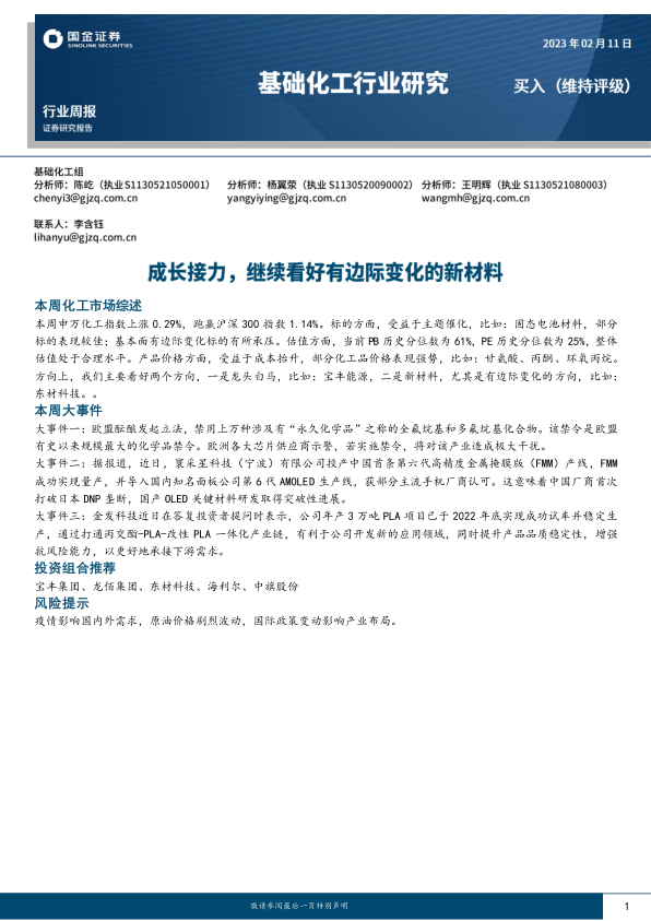 基础化工行业研究:成长接力,继续看好有边际变化的新材料