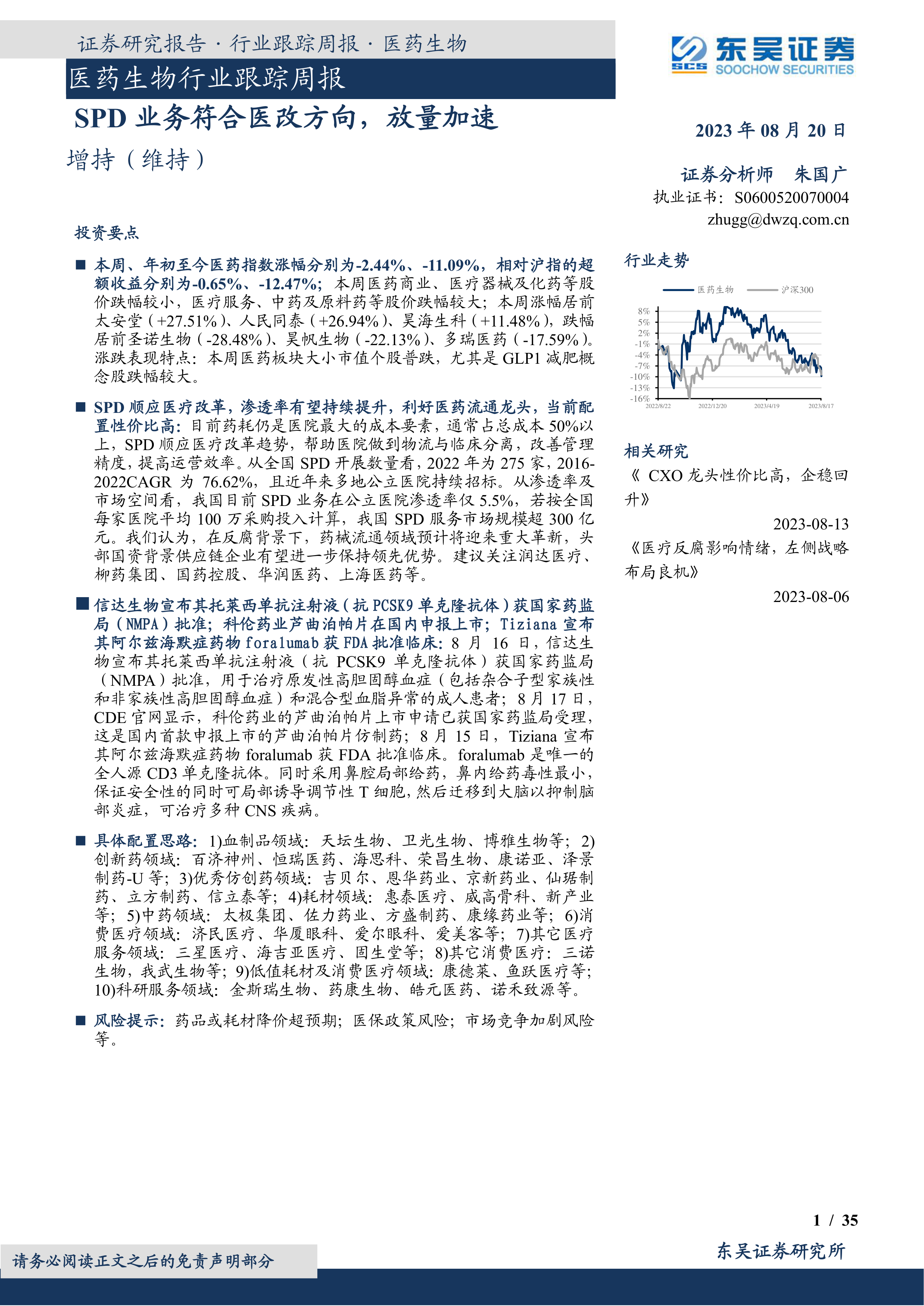 医药生物行业跟踪周报:SPD业务符合医改方向,放量加速