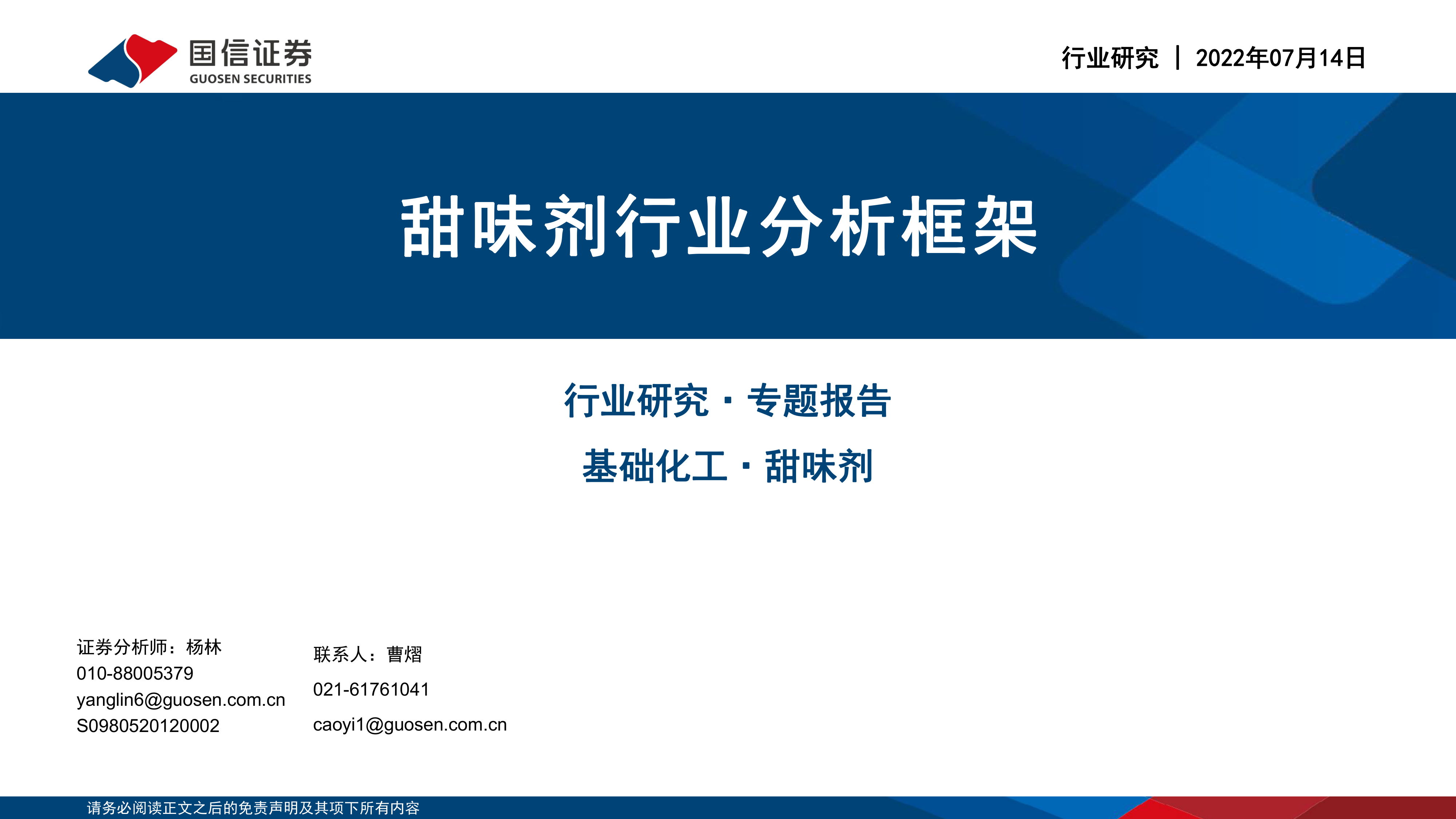 基础化工:甜味剂行业分析框架