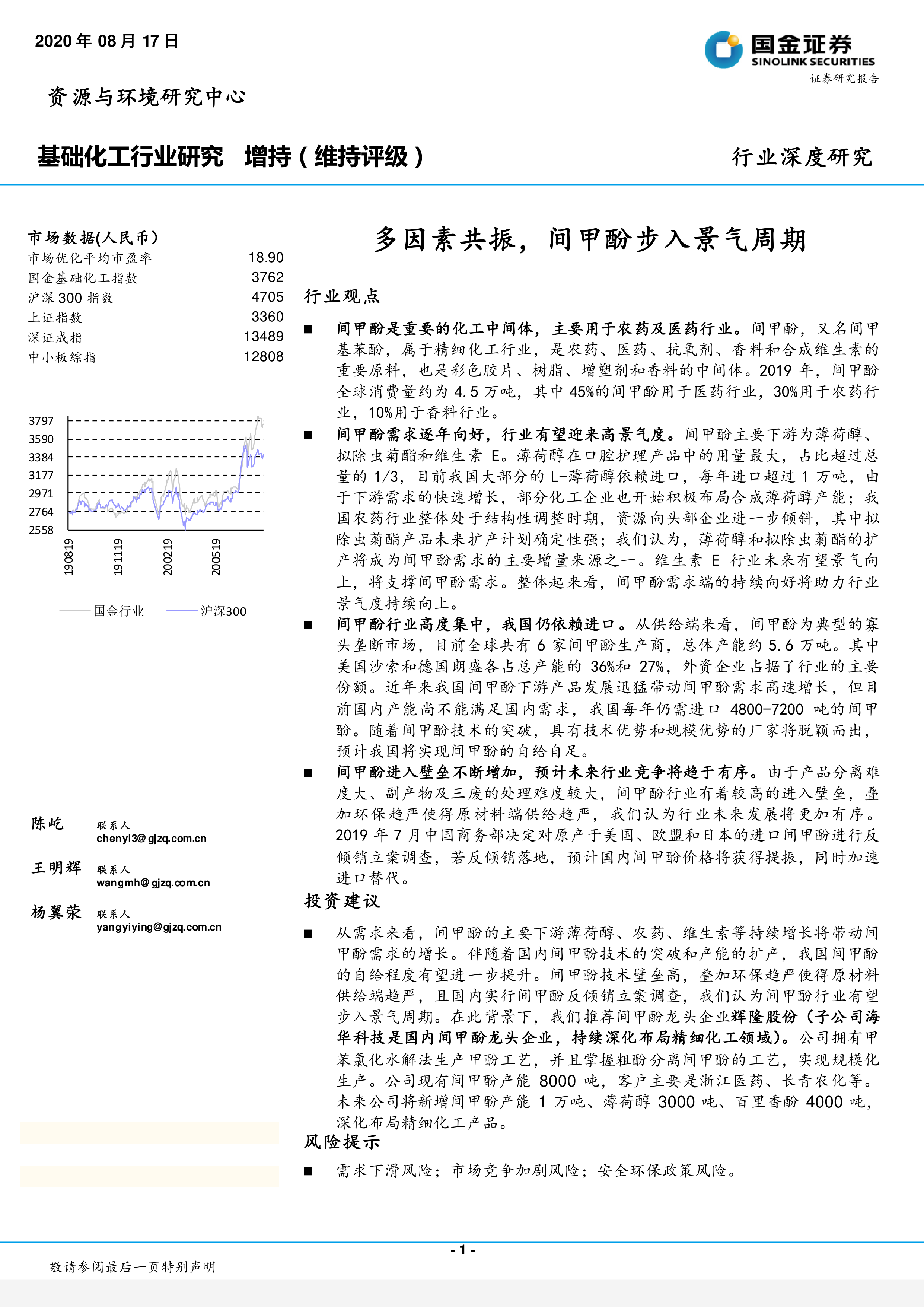 基础化工行业研究:多因素共振,间甲酚步入景气周期