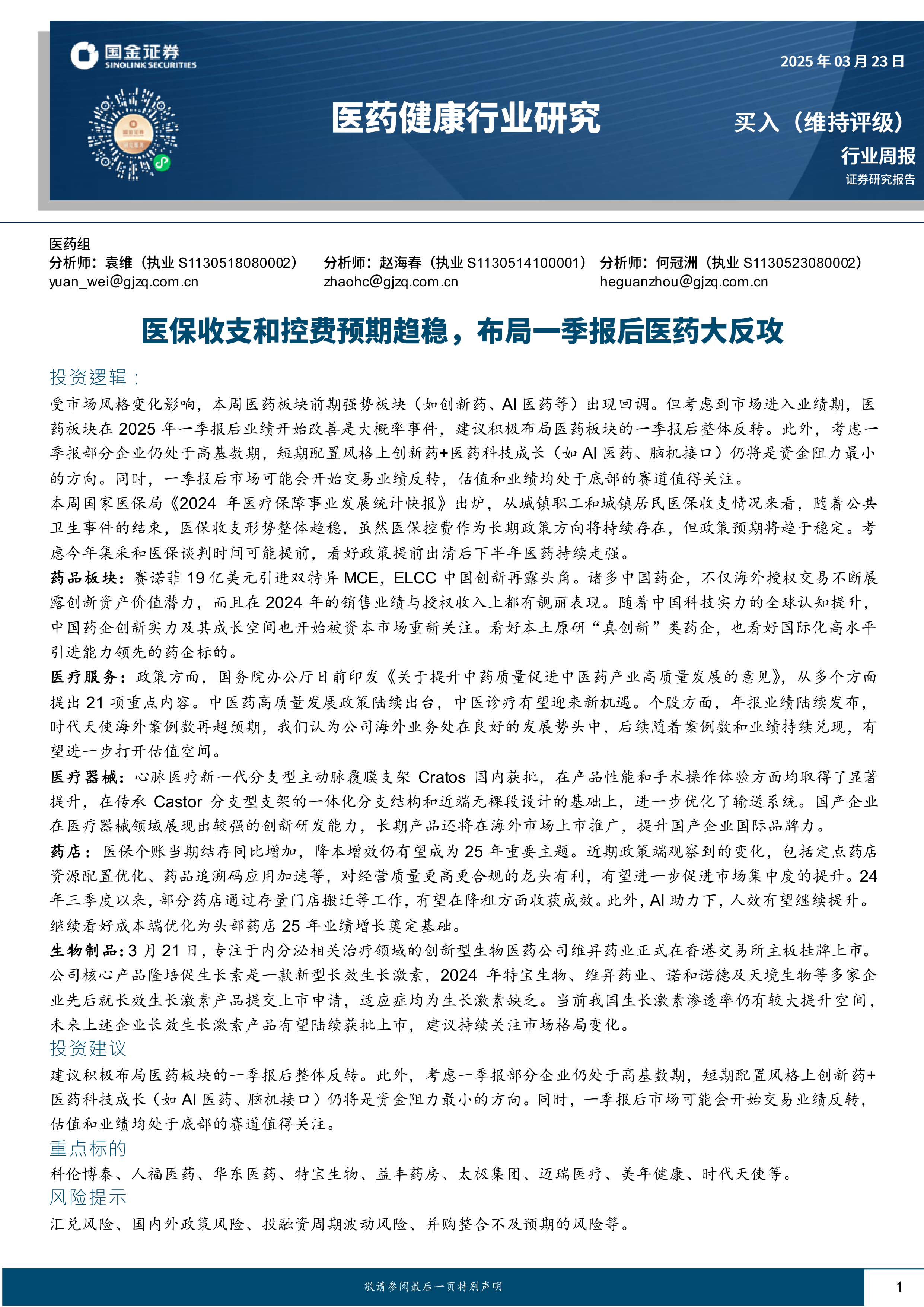 医药健康行业研究:医保收支和控费预期趋稳,布局一季报后医药大反攻