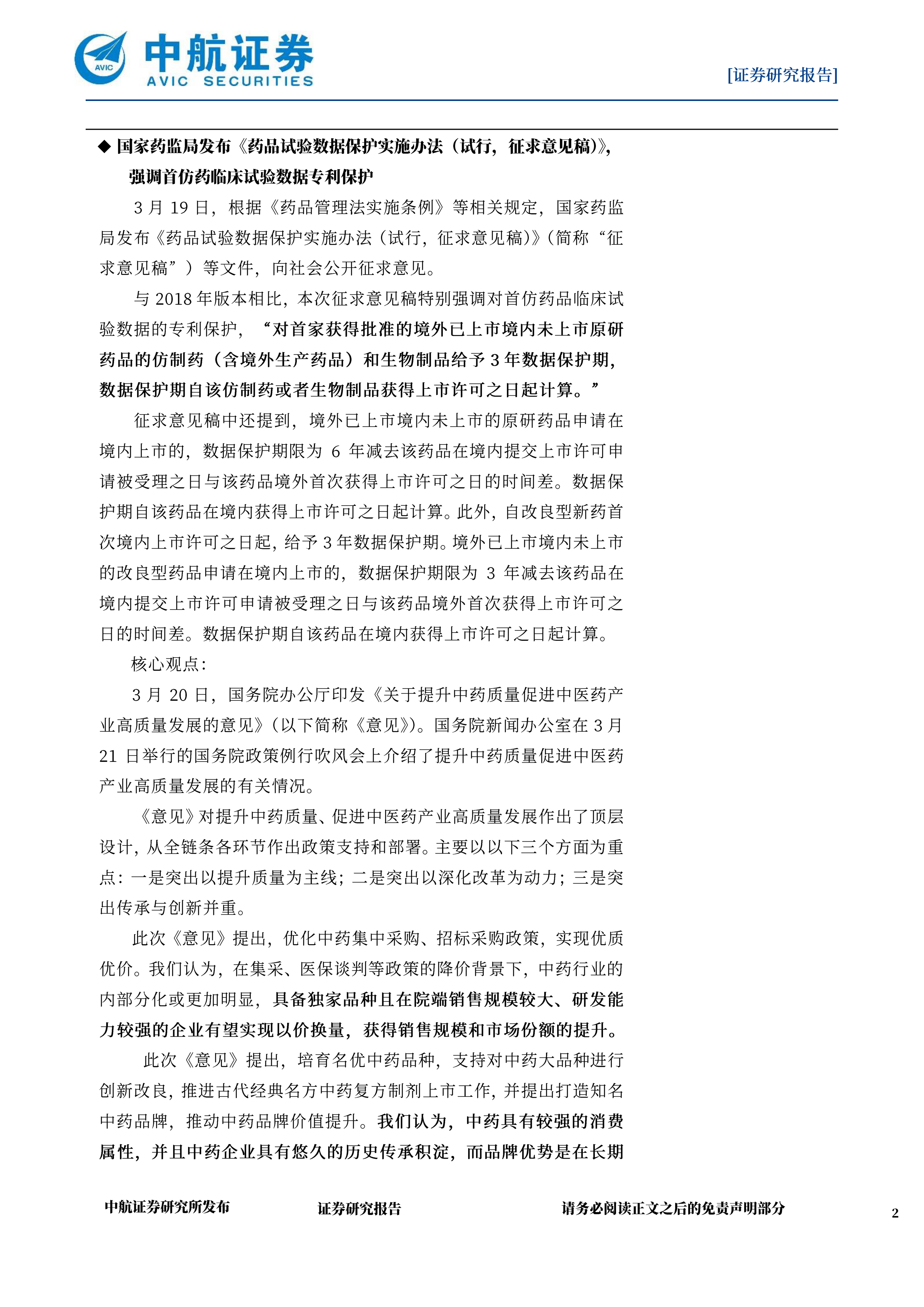 此次《意见》提出,培育名优中药品种,支持对中药大品种进行创新改良,推进古代经典名方中药复方制剂上市工作,并提出打造知名中药品牌,推动中药品牌价值提升。我们认为,中药具有较强的消费属性,并且中药企业具有悠久的历史传承积淀,而品牌优势是在长期AVIC
