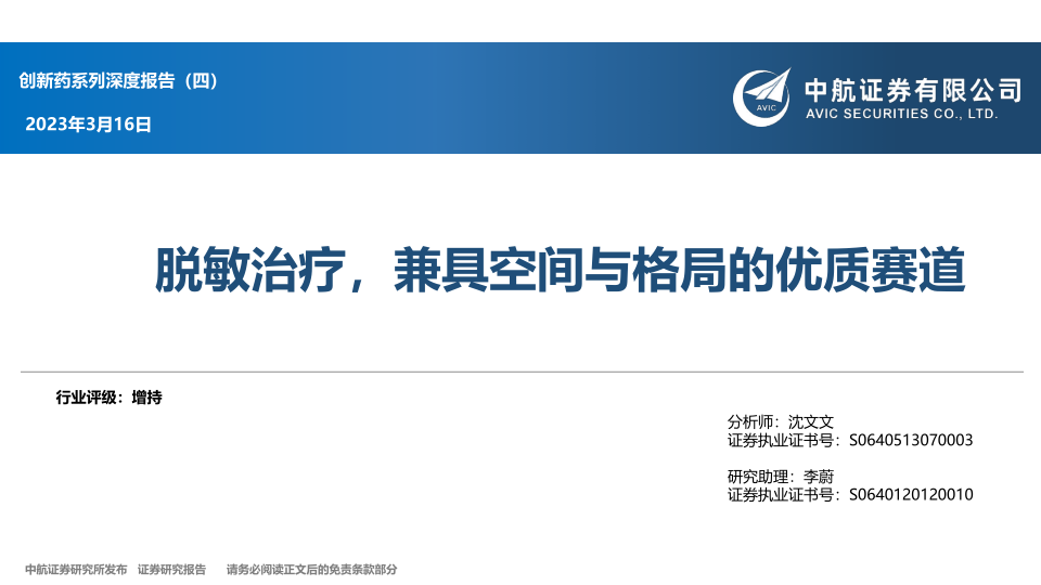 创新药系列深度报告(四):脱敏治疗,兼具空间与格局的优质赛道